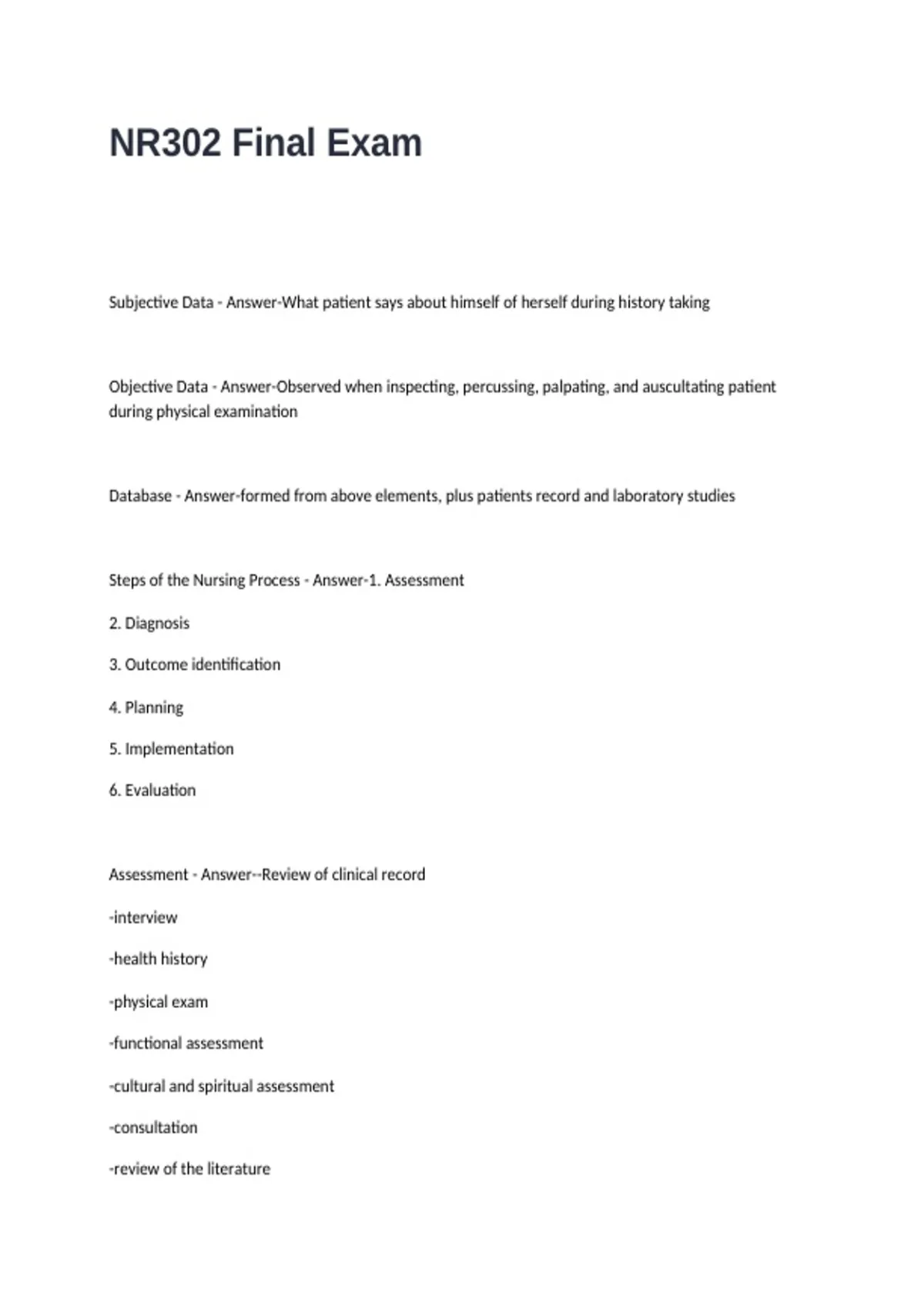 Steps of the Nursing Process - Answer-1. Assessment