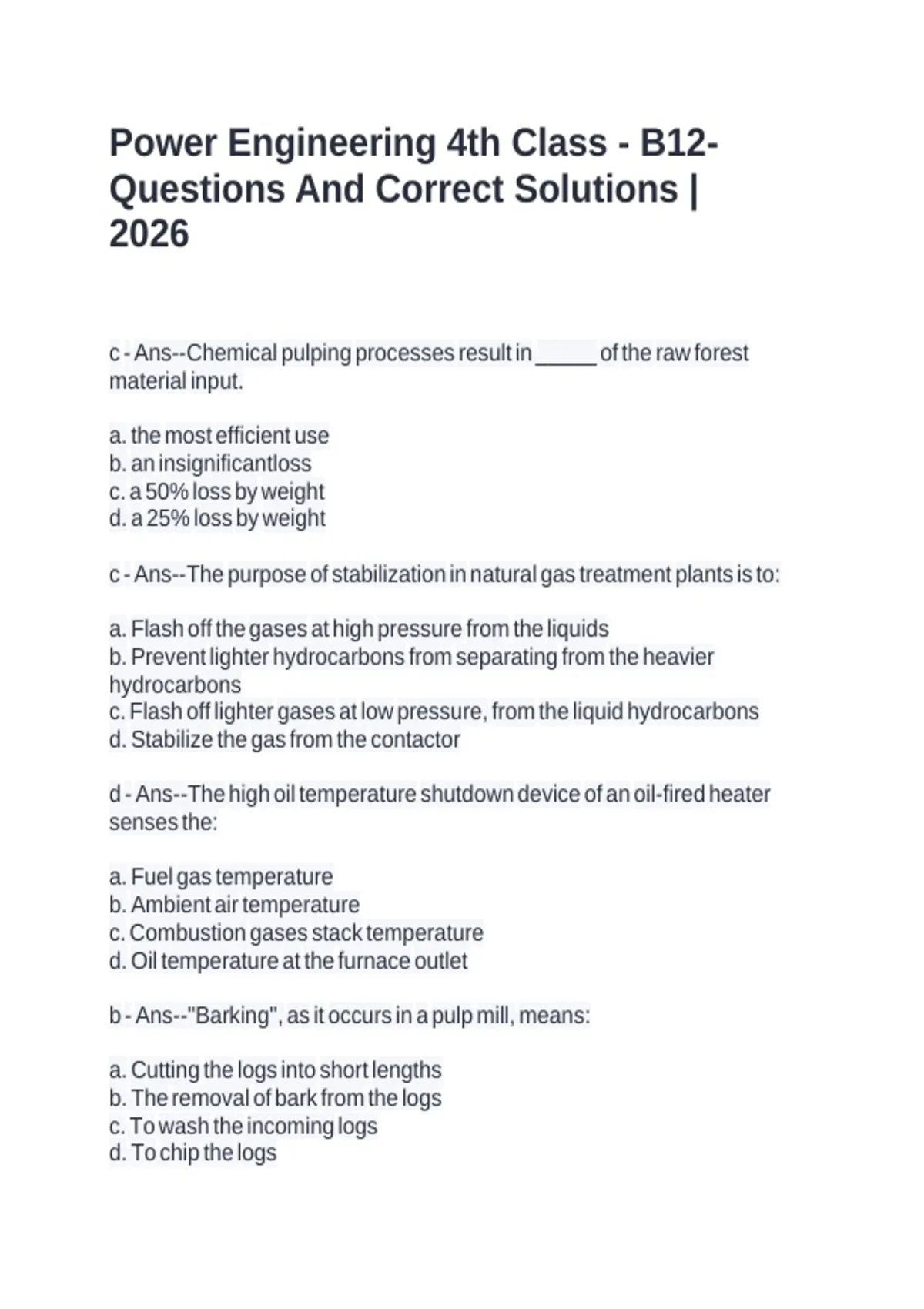 Power Engineering 4th Class - B12- Questions And Correct Solutions | 2026