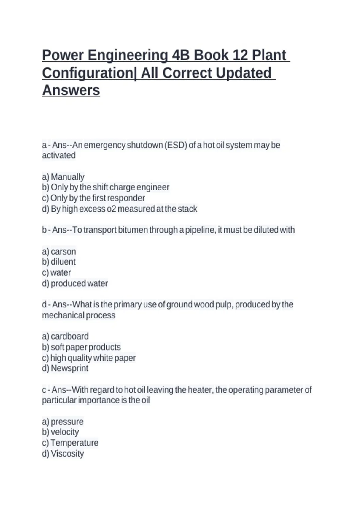 Power Engineering 4B Book 12 Plant Configuration| All Correct Updated Answers