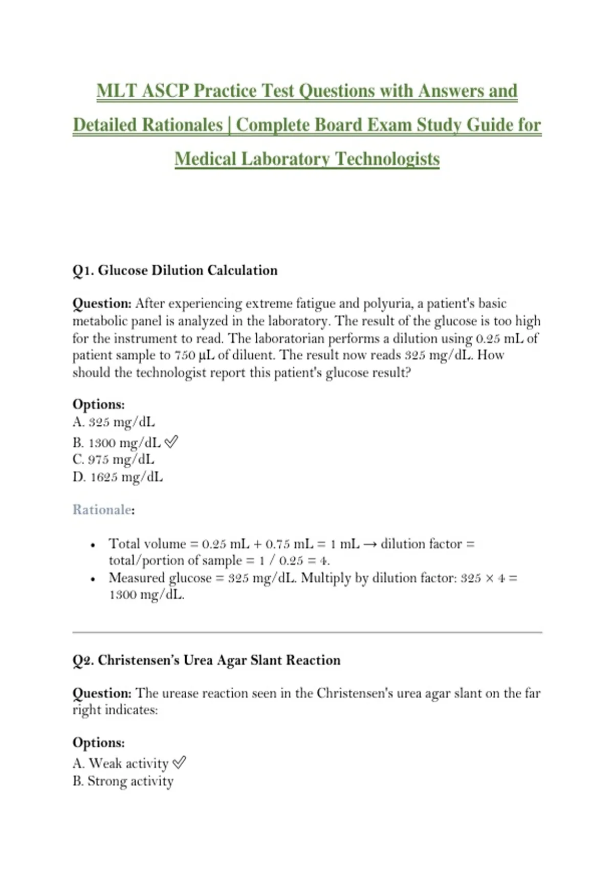 Q1. Glucose Dilution Calculation
