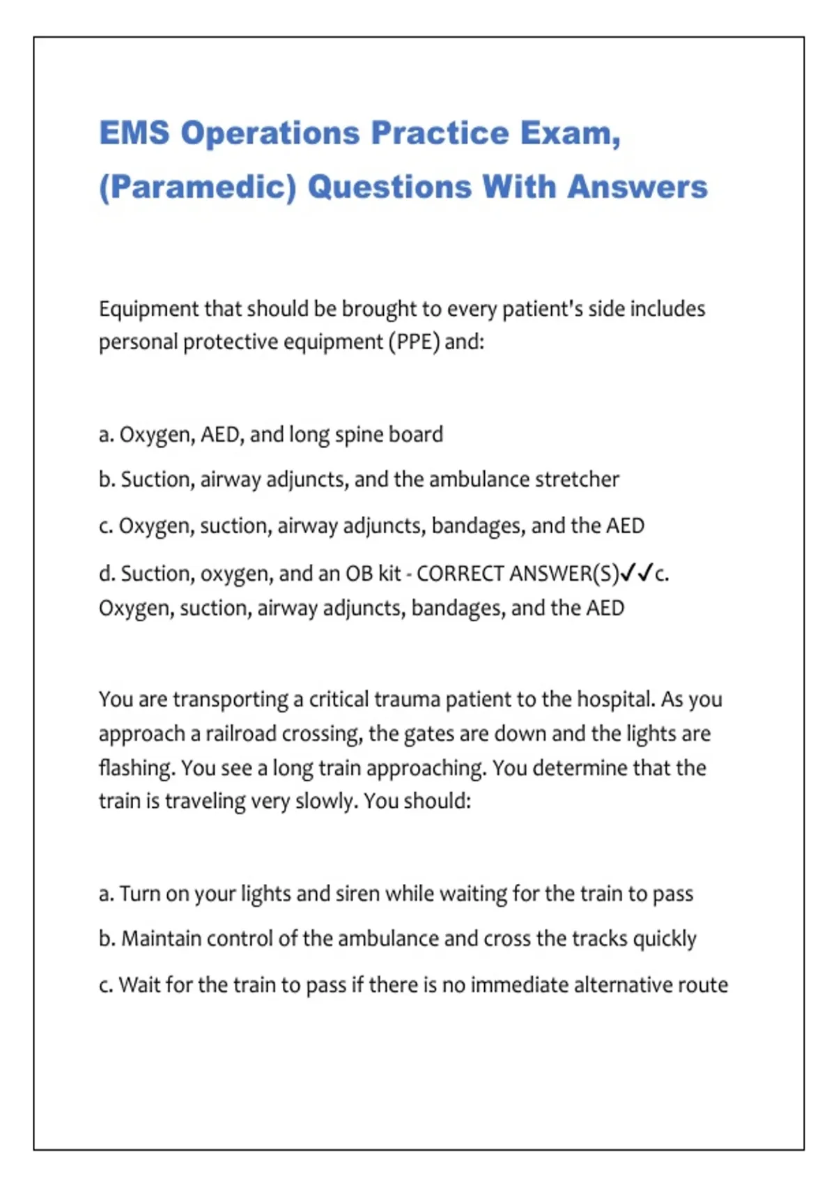 EMS Operations Practice Exam, (Paramedic) Questions With Answers