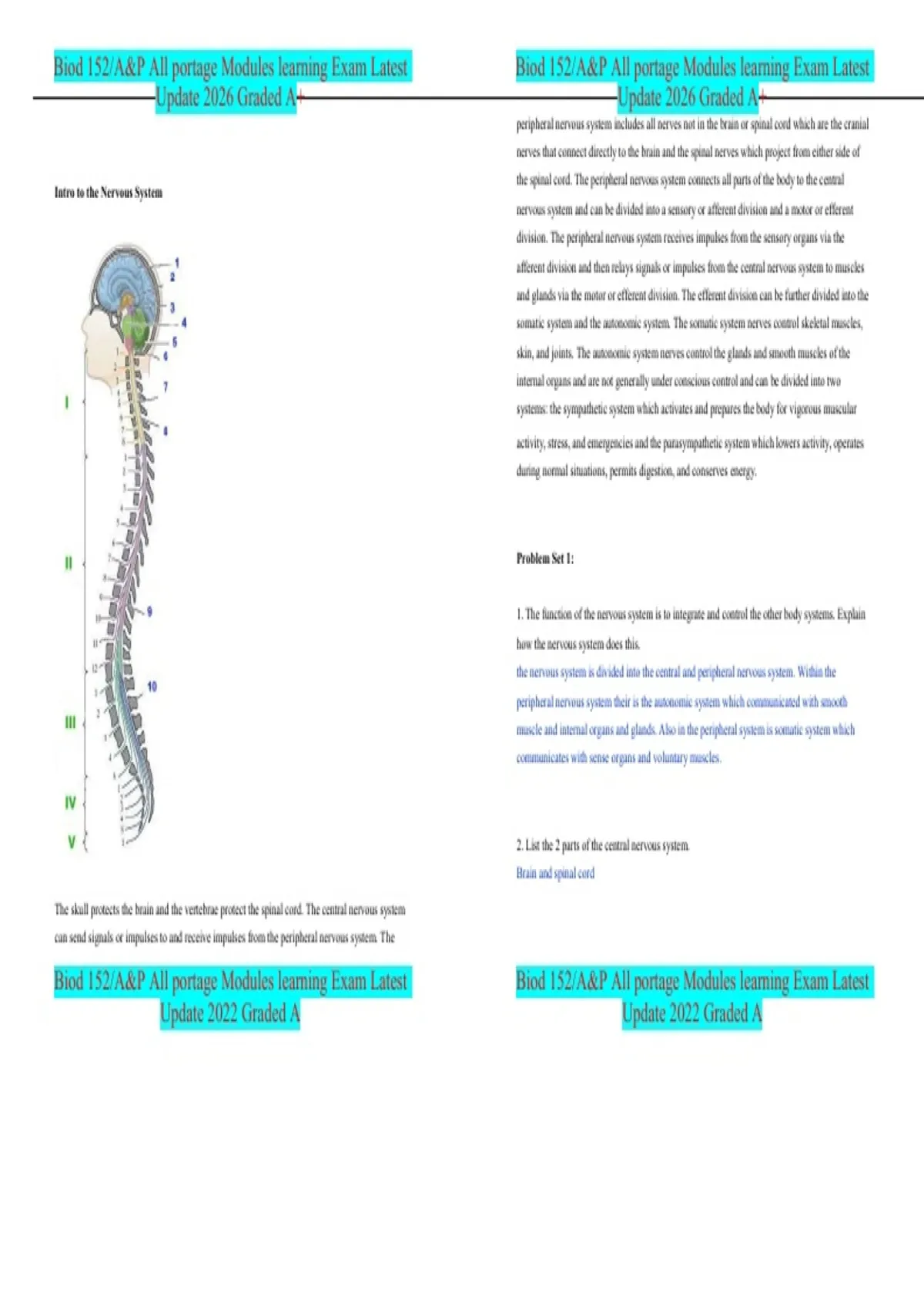 Biod 152/A&P All portage Modules learning Exam Latest Update 2026 Graded A+ Biod 152/A&P All portage Modules learning Exam Latest Update 2026 Graded A+