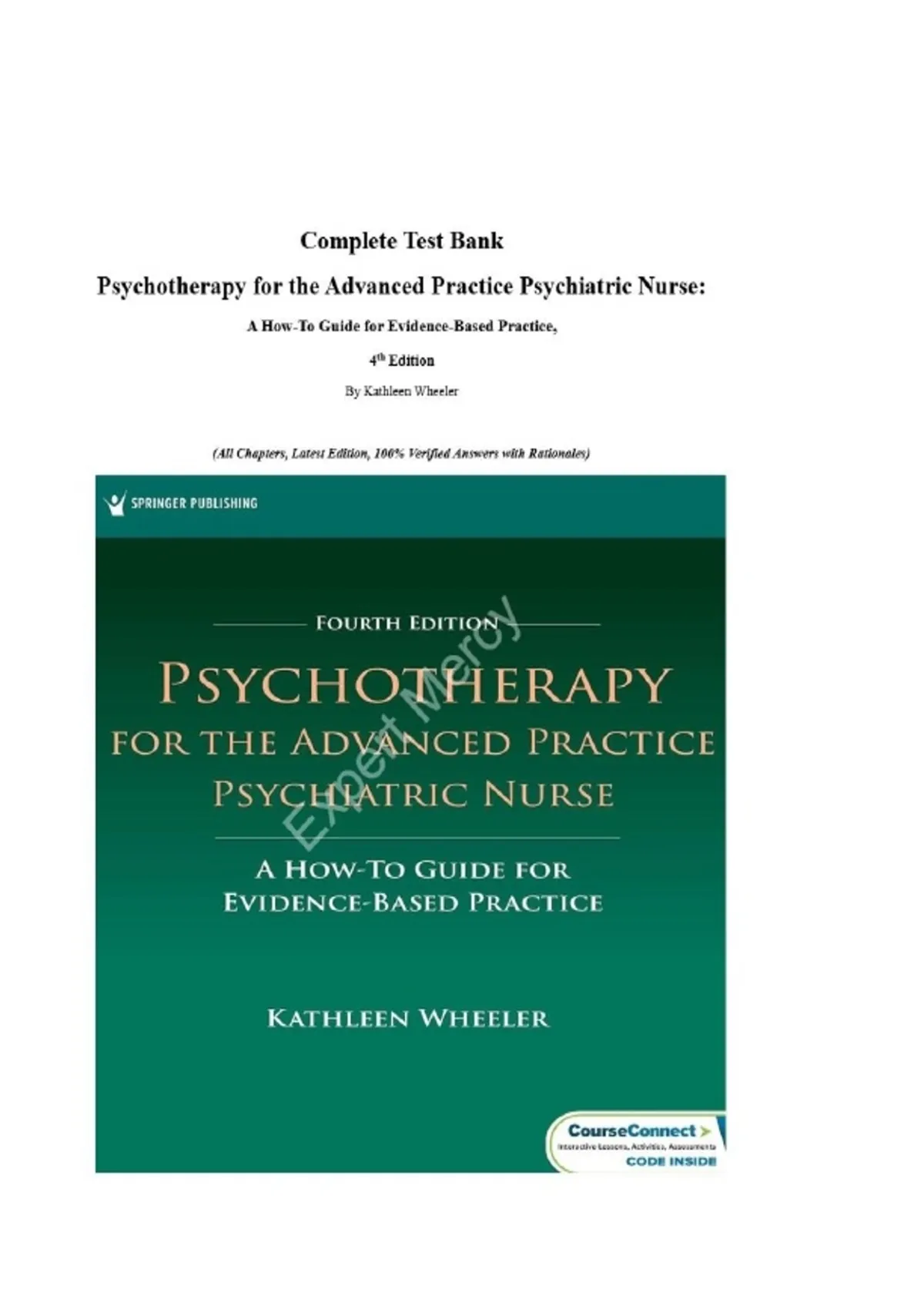 Complete Test Bank Psychotherapy for the Advanced Practice Psychiatric Nurse: A How-To Guide for Evidence-Based Practice, 4th Edition. By Kathleen Wheeler. (All Chapters, Latest Edition, 100% Verified Answers with Detailed Rationales)
