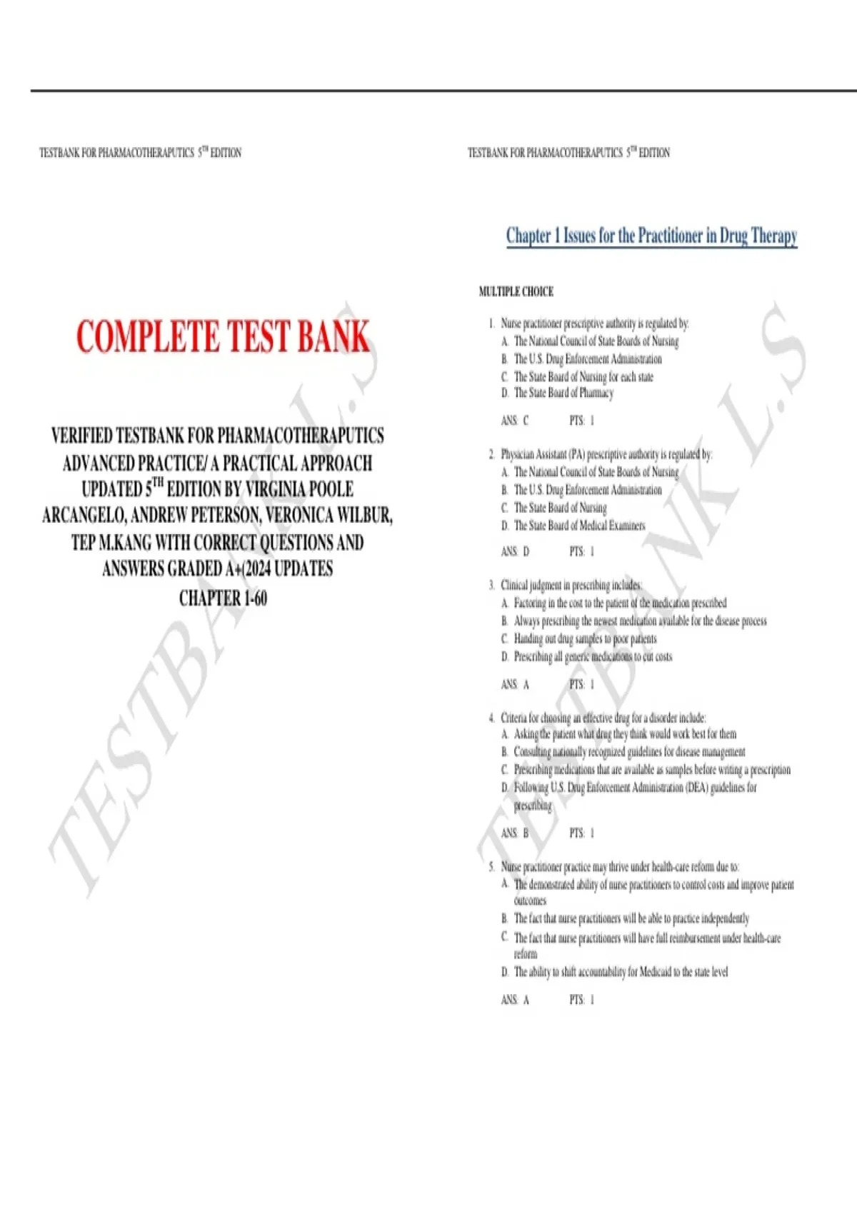 ,TESTBANK FOR PHARMACOTHERAPUTICS 5TH EDITION TESTBANK FOR PHARMACOTHERAPUTICS 5TH EDITION