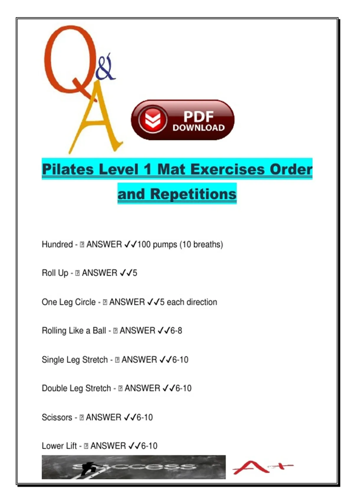 Pilates Level 1 Mat Exercises Order