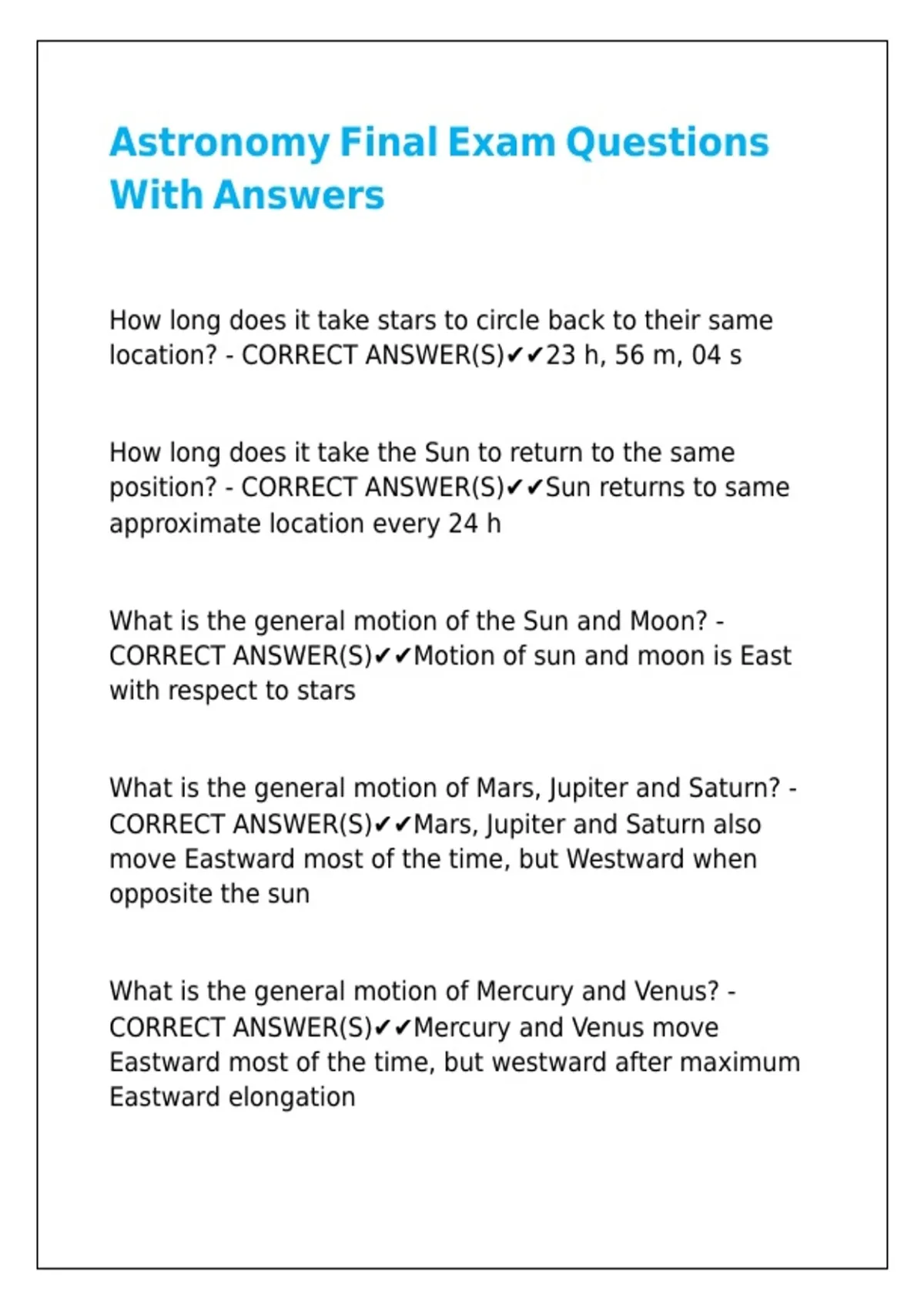 CORRECT ANSWER(S)✔✔Motion of sun and moon is East
