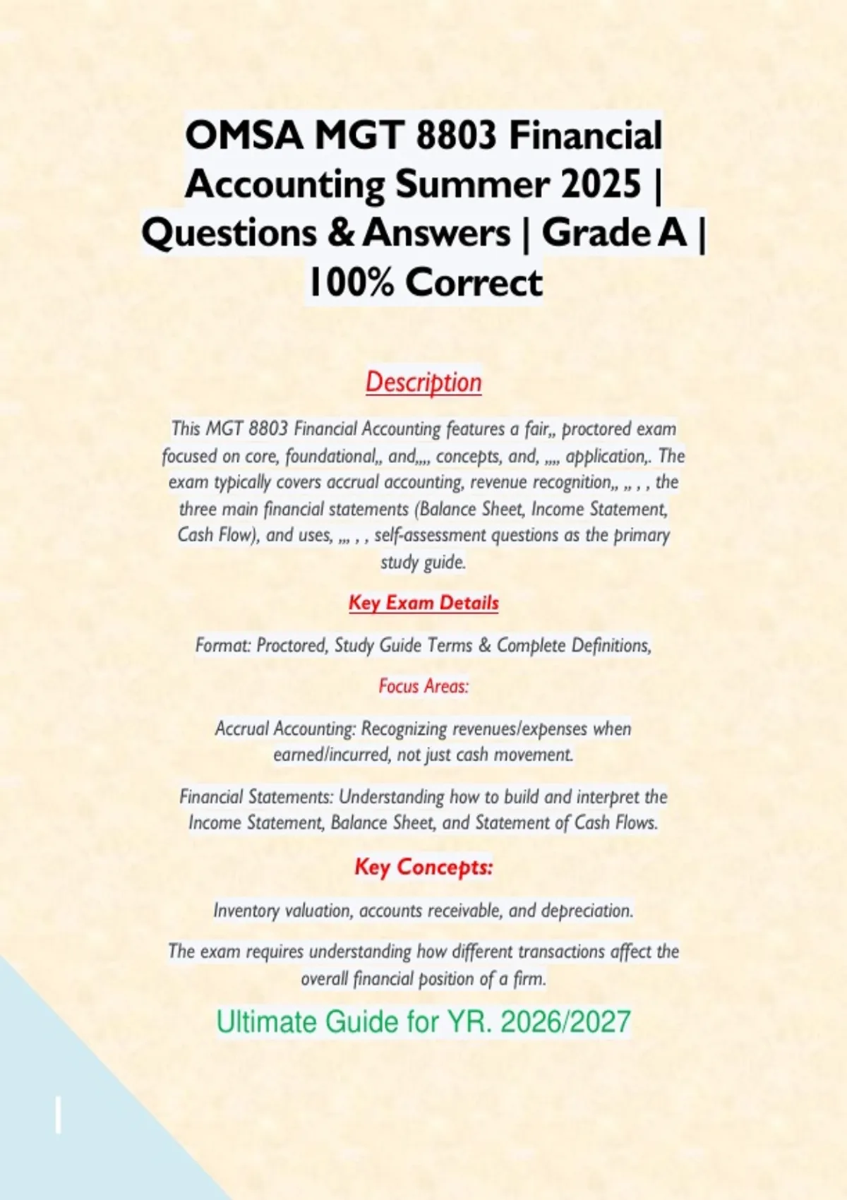 This MGT 8803 Financial Accounting features a fair,, proctored exam