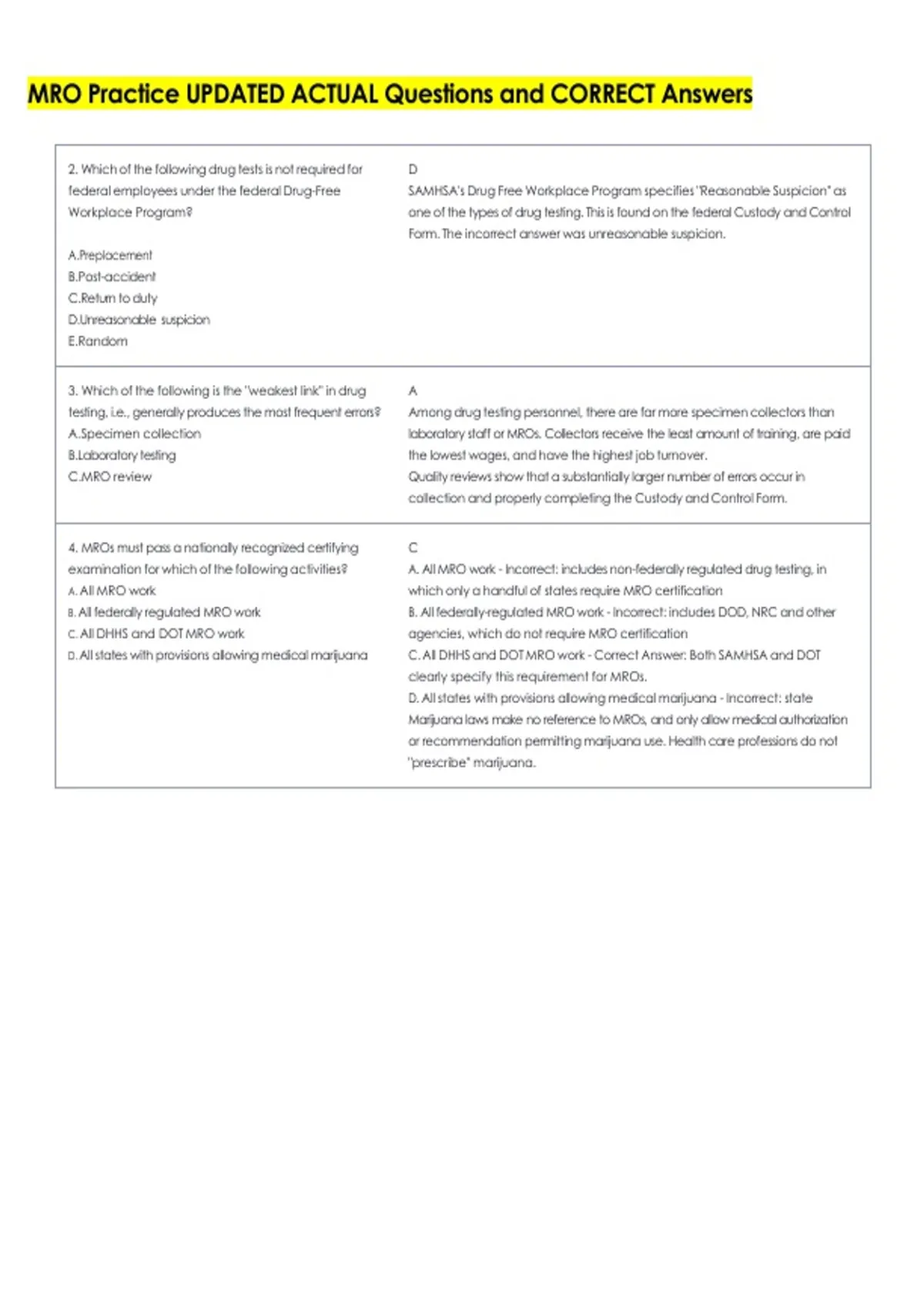 D. All states with provisions allowing medical marijuana C. All DHHS and DOT MRO work - Correct Answer: Both SAMHSA and DOT