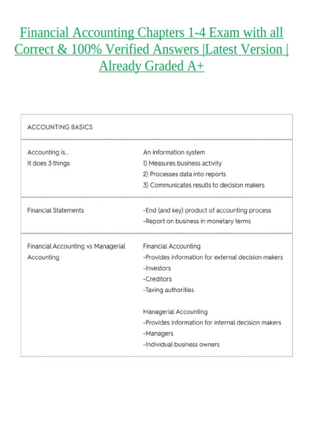 Financial Accounting Chapters 1-4 Exam with all Correct & 100% Verified Answers |Latest Version |Already Graded A+