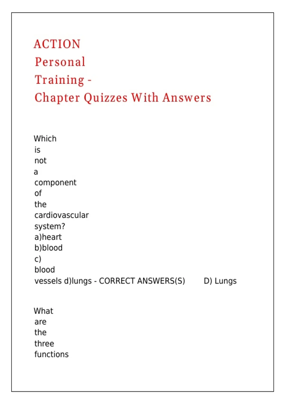 ACTION Personal Training - Chapter Quizzes With Answers