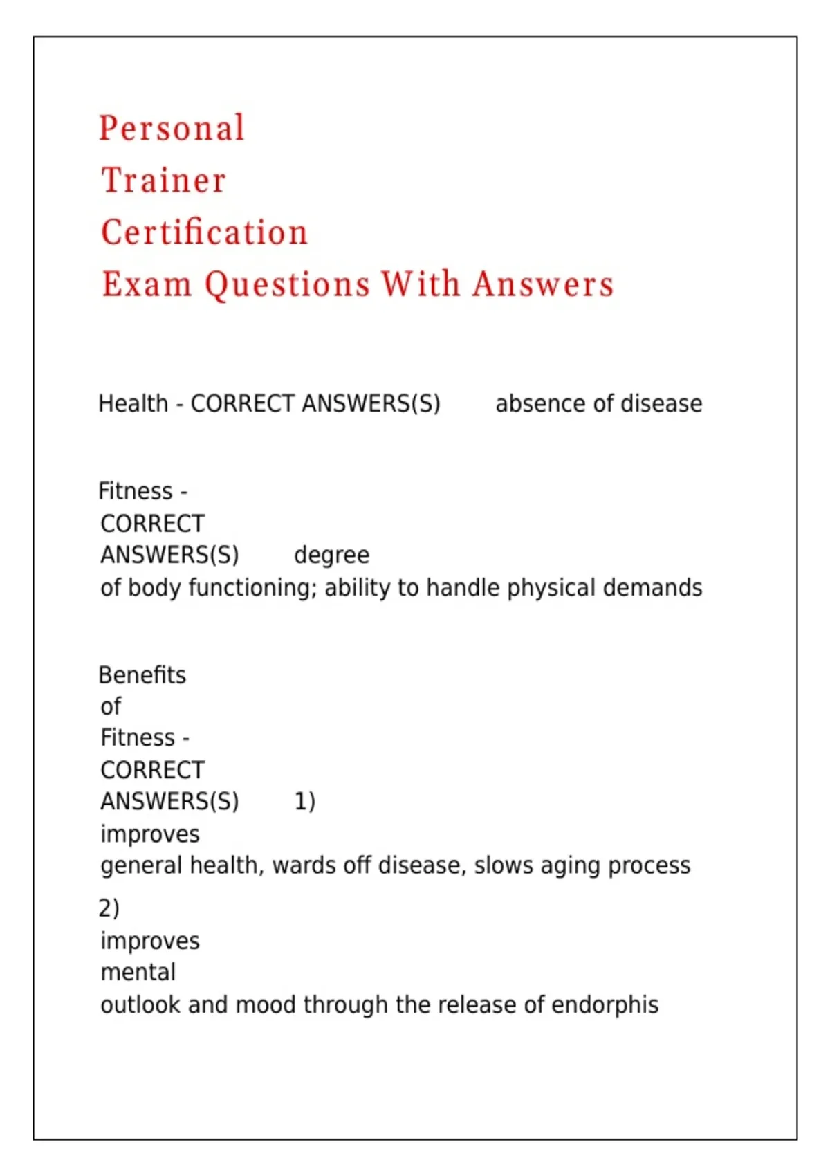 Personal Trainer Certification Exam Questions With Answers