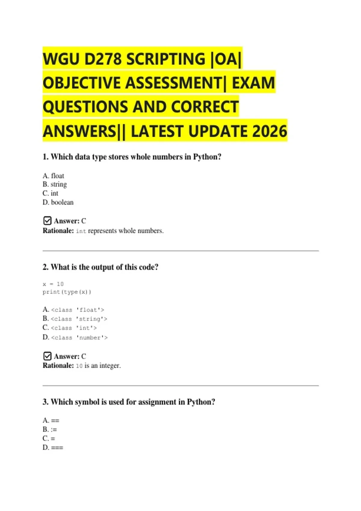 WGU D278 SCRIPTING |OA| OBJECTIVE ASSESSMENT| EXAM QUESTIONS AND CORRECT ANSWERS|| LATEST UPDATE 2026