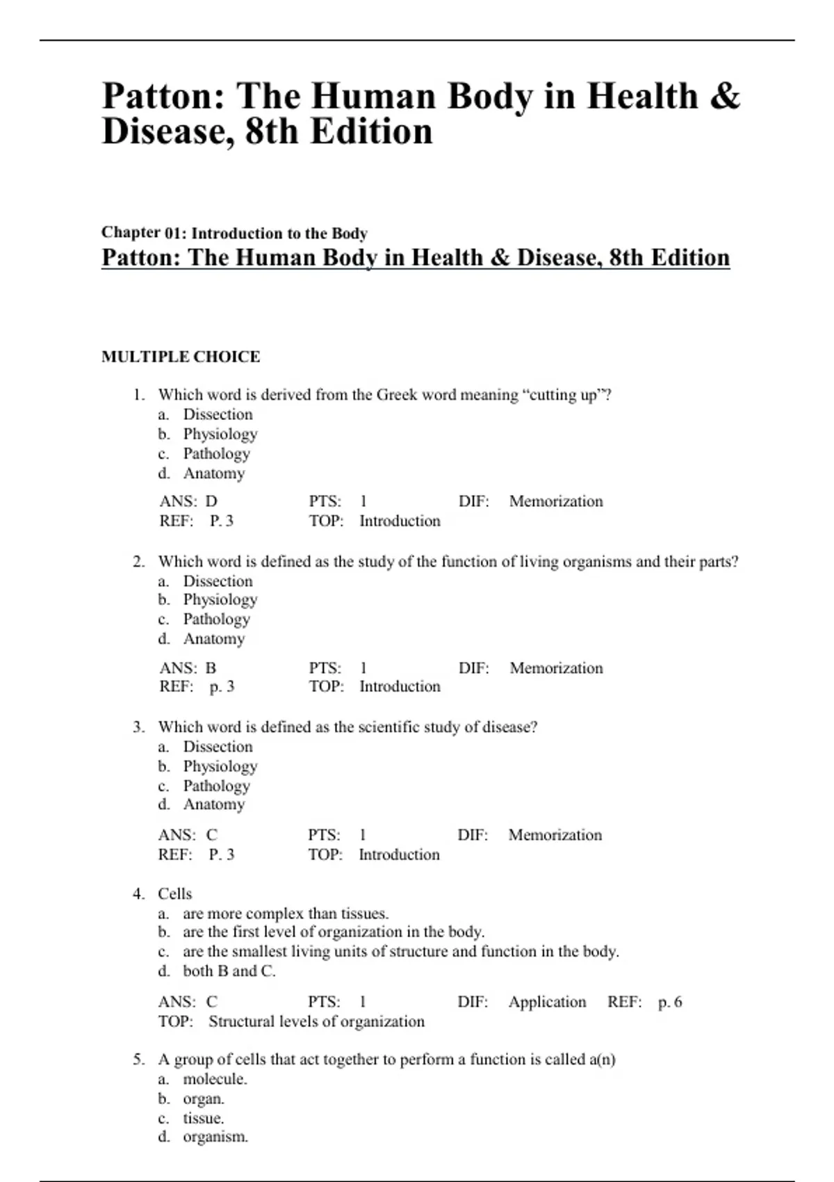 Patton The Human Body in Health & Disease, 8th Edition – Complete 2026 Study Resource