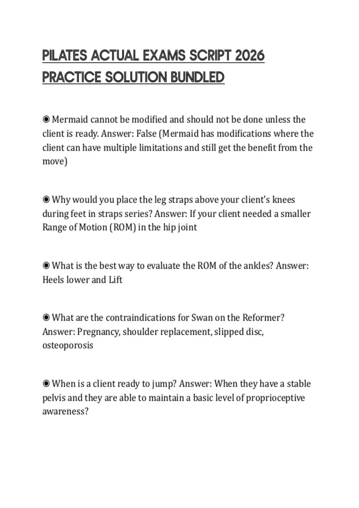 PILATES ACTUAL EXAMS SCRIPT 2026 PRACTICE SOLUTION BUNDLED