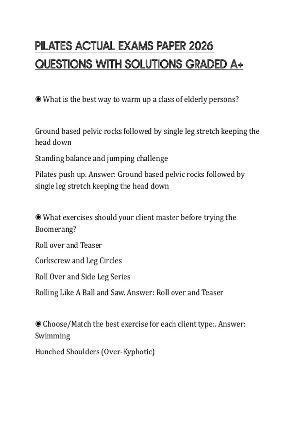 PILATES ACTUAL EXAMS PAPER 2026 QUESTIONS WITH SOLUTIONS GRADED A+