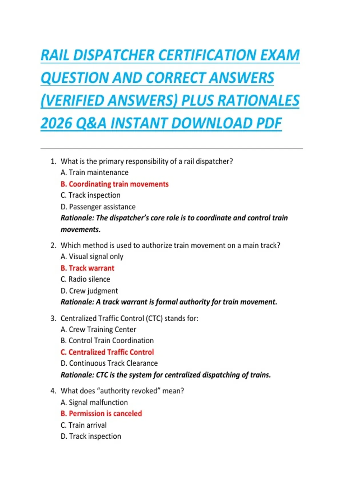RAIL DISPATCHER CERTIFICATION EXAM