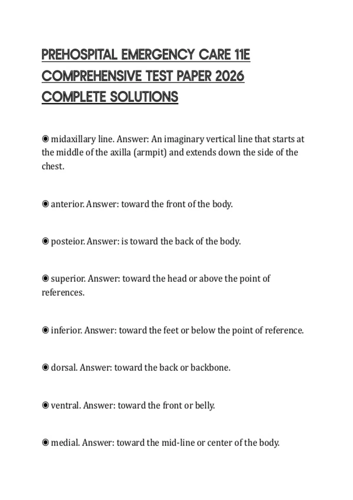 PREHOSPITAL EMERGENCY CARE 11E COMPREHENSIVE TEST PAPER 2026 COMPLETE SOLUTIONS