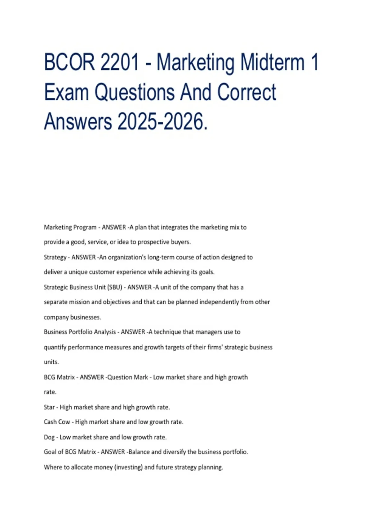 BCOR 2201 - Marketing Midterm 1 Exam Questions And Correct Answers .