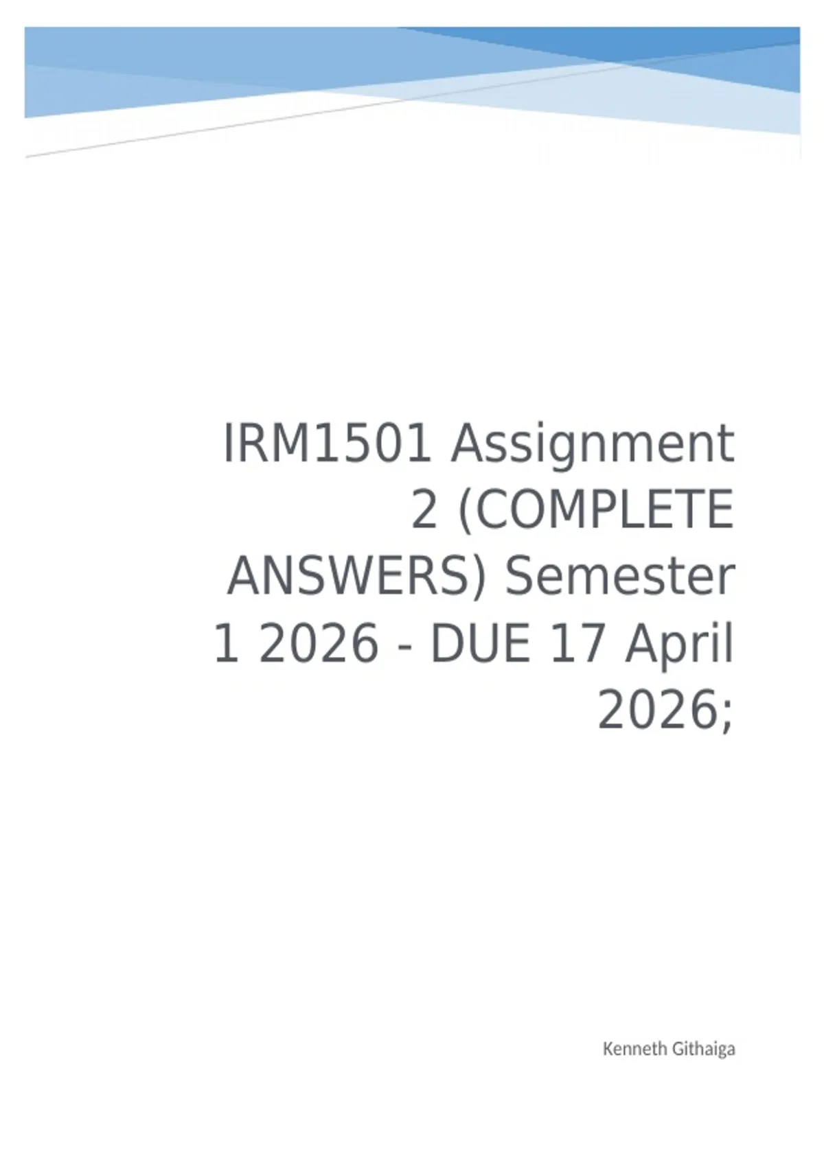 , IRM1501 Assignment 2 (COMPLETE ANSWERS) Semester 1 2026 - DUE 17