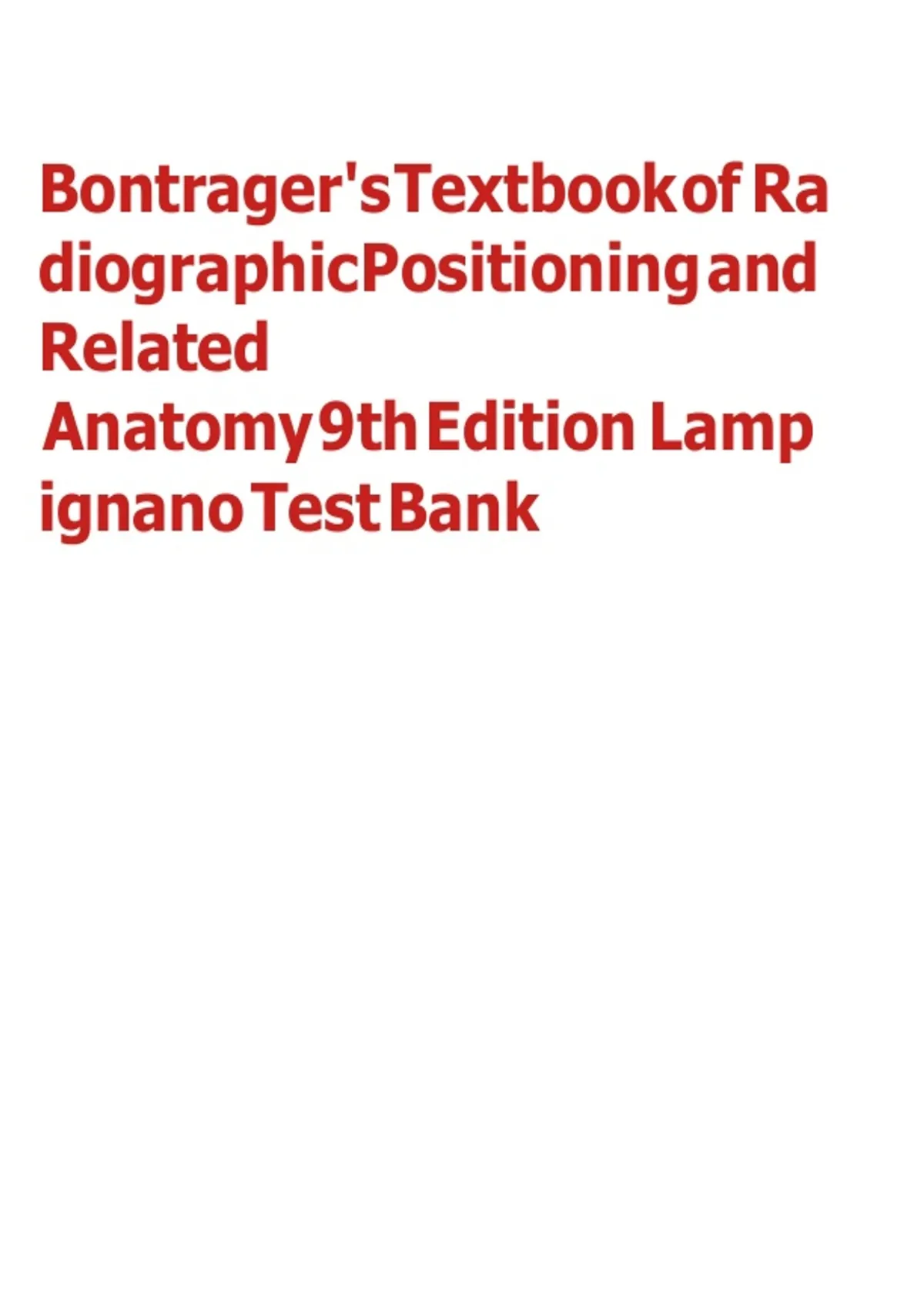 Test Bank for Bontrager's Textbook of Radiographic Positioning and Related Anatomy 9th Edition (Lampignano, 2017) , Chapter 1-20 | Complete Guide A+
