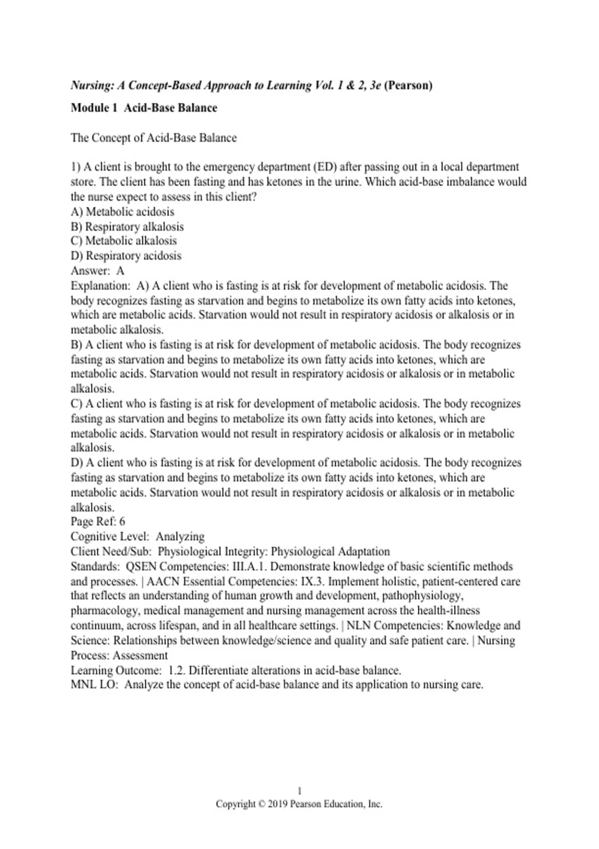 MNL LO: Analyze the concept of acid-base balance and its application to nursing care.