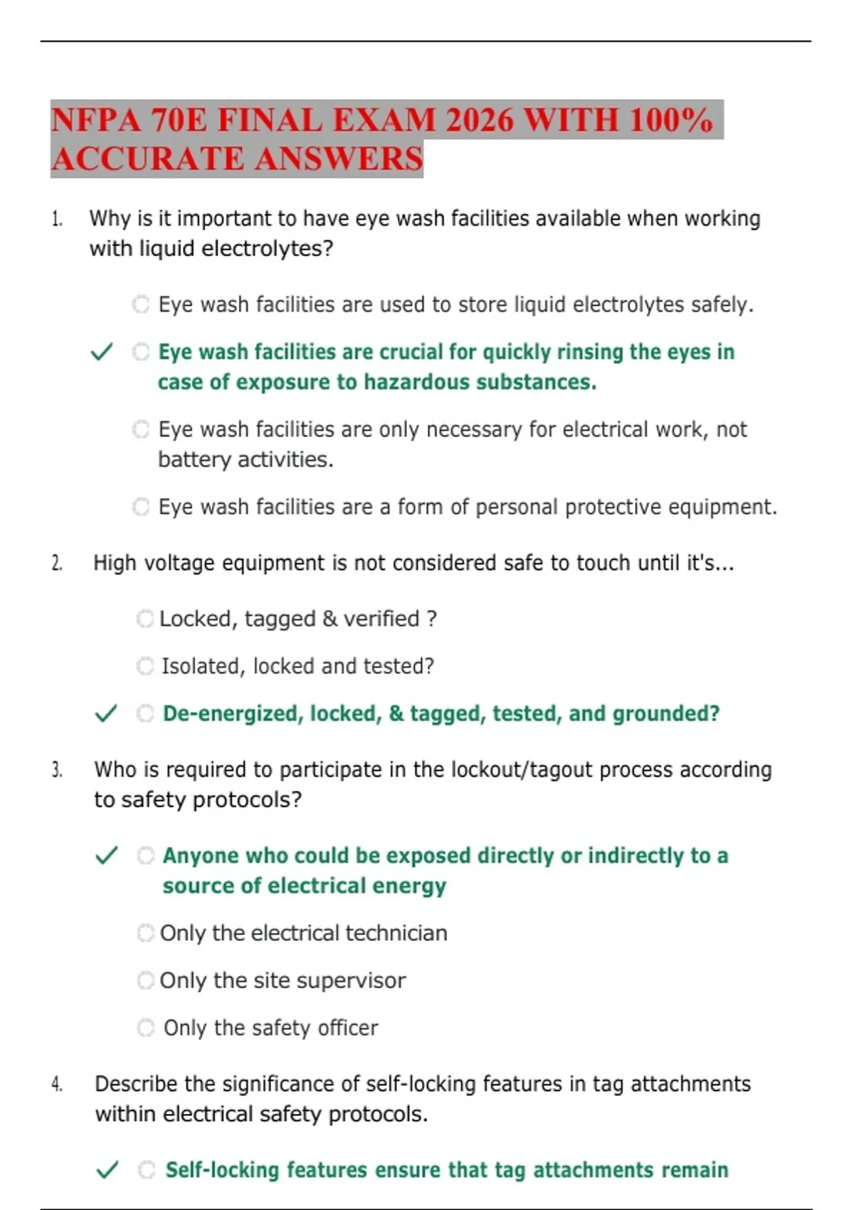 NFPA 70E FINAL EXAM 2026 WITH 100% ACCURATE ANSWERS
