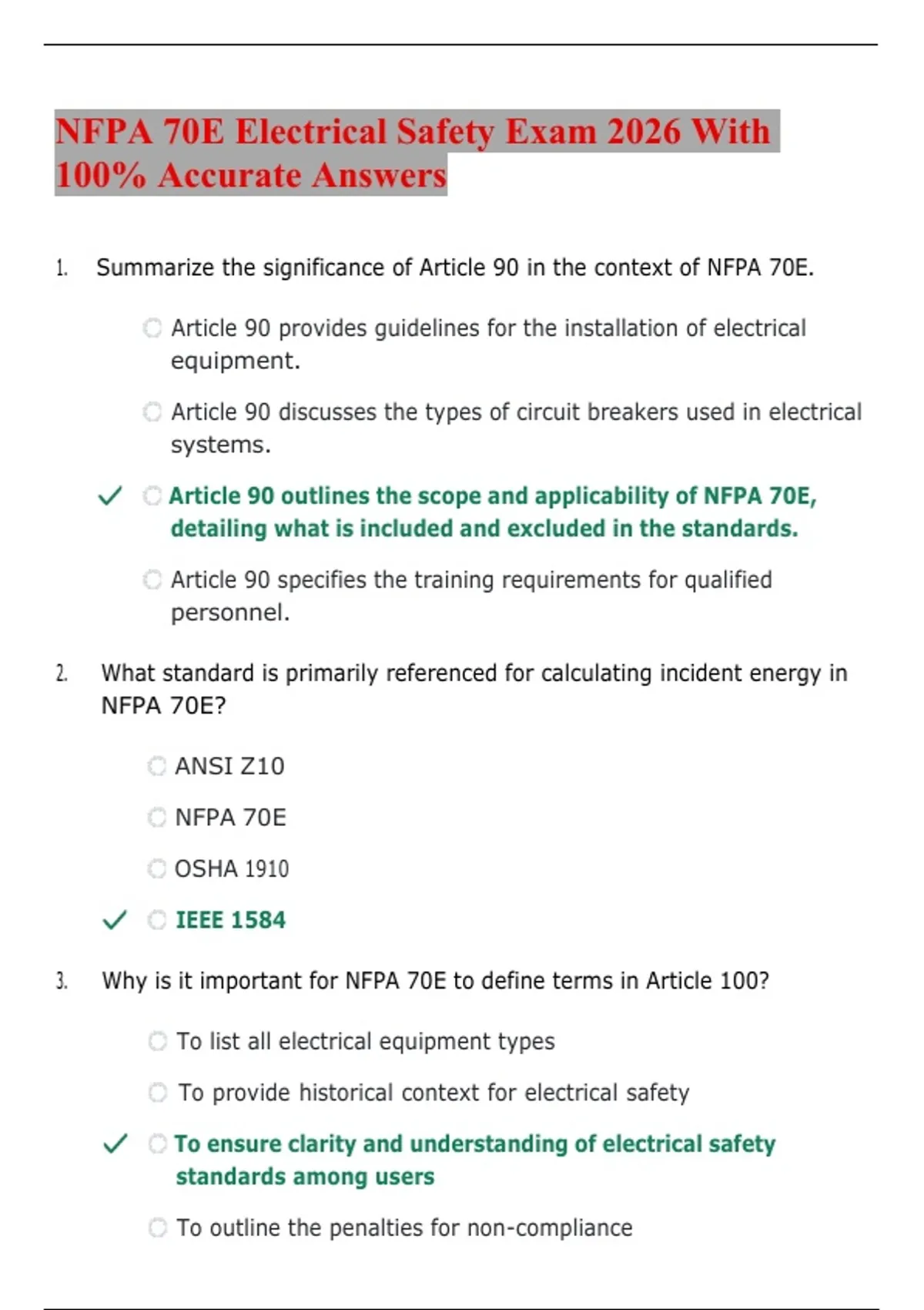 NFPA 70E Electrical Safety Exam 2026 With 100% Accurate Answers