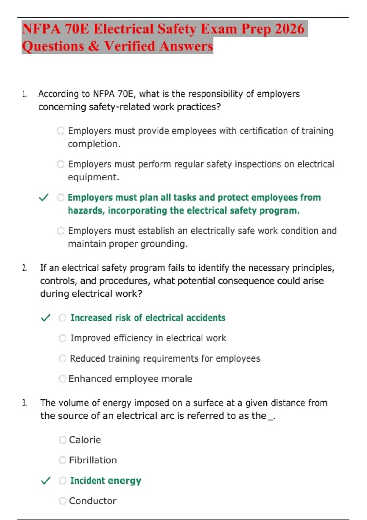NFPA 70E Electrical Safety Exam Prep 2026 Questions & Verified Answers