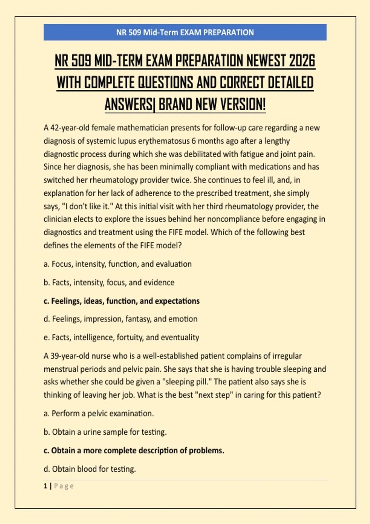 NR 509 MID-TERM EXAM PREPARATION NEWEST 2026