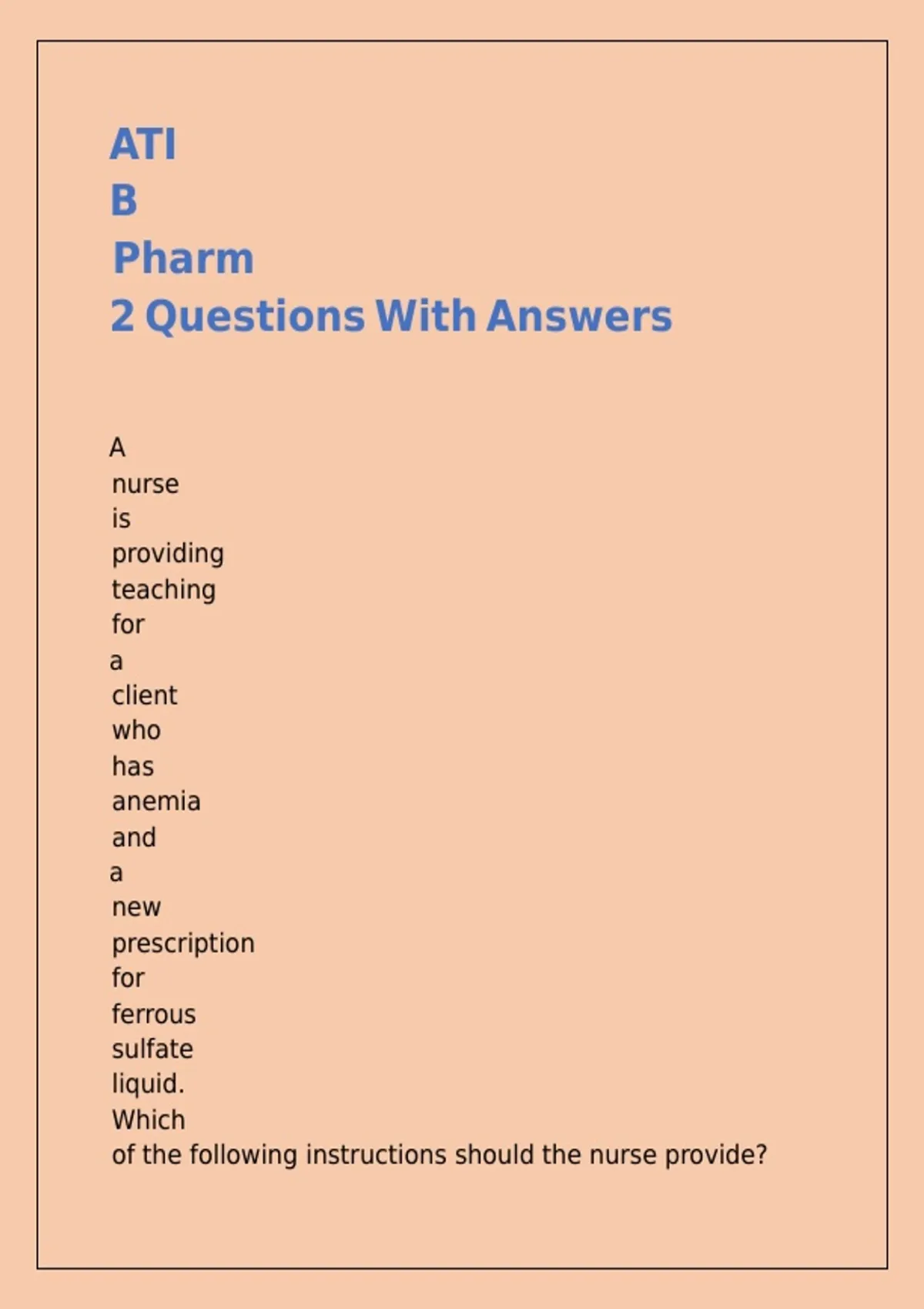 ATI B Pharm 2 Questions With Answers