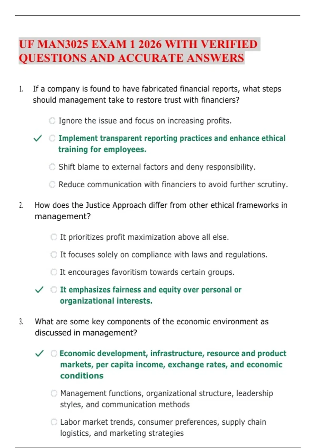 UF MAN3025 EXAM 1 2026 WITH VERIFIED QUESTIONS AND ACCURATE ANSWERS