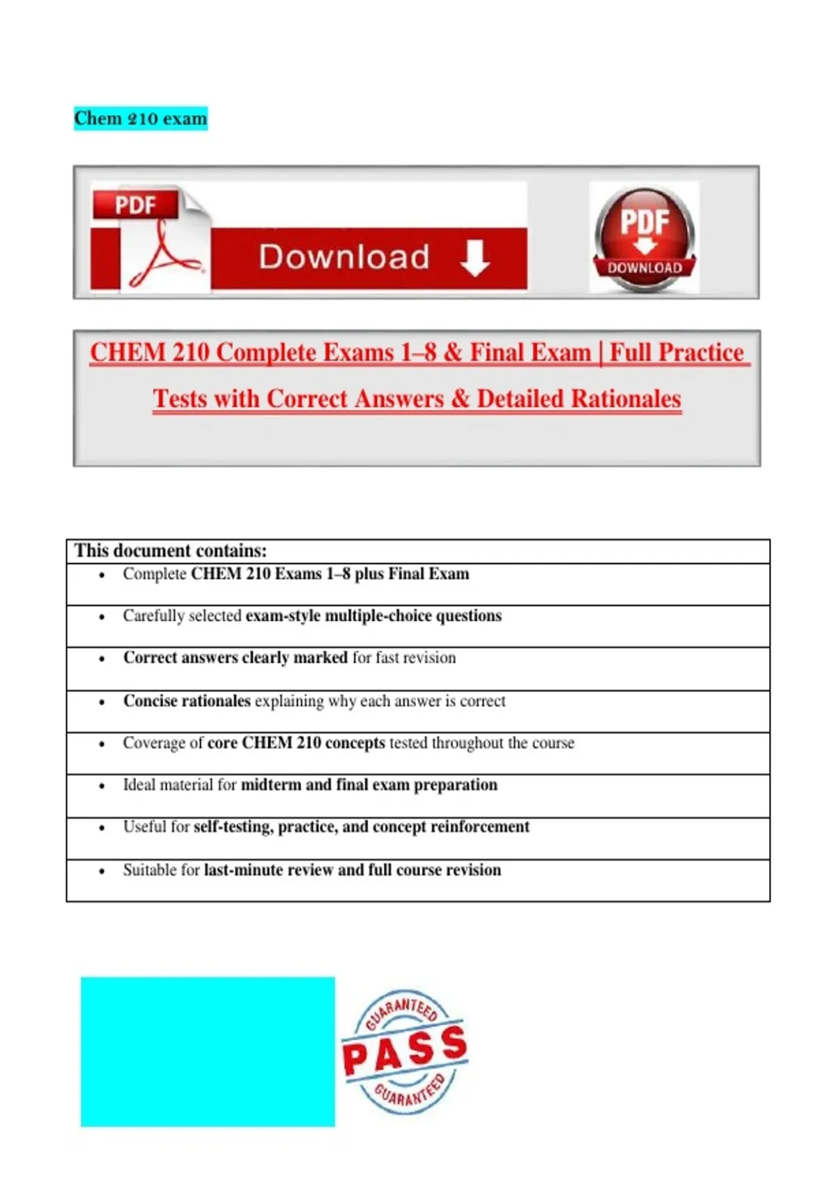 CHEM 210 Complete Exams 1–8 & Final Exam | Full Practice