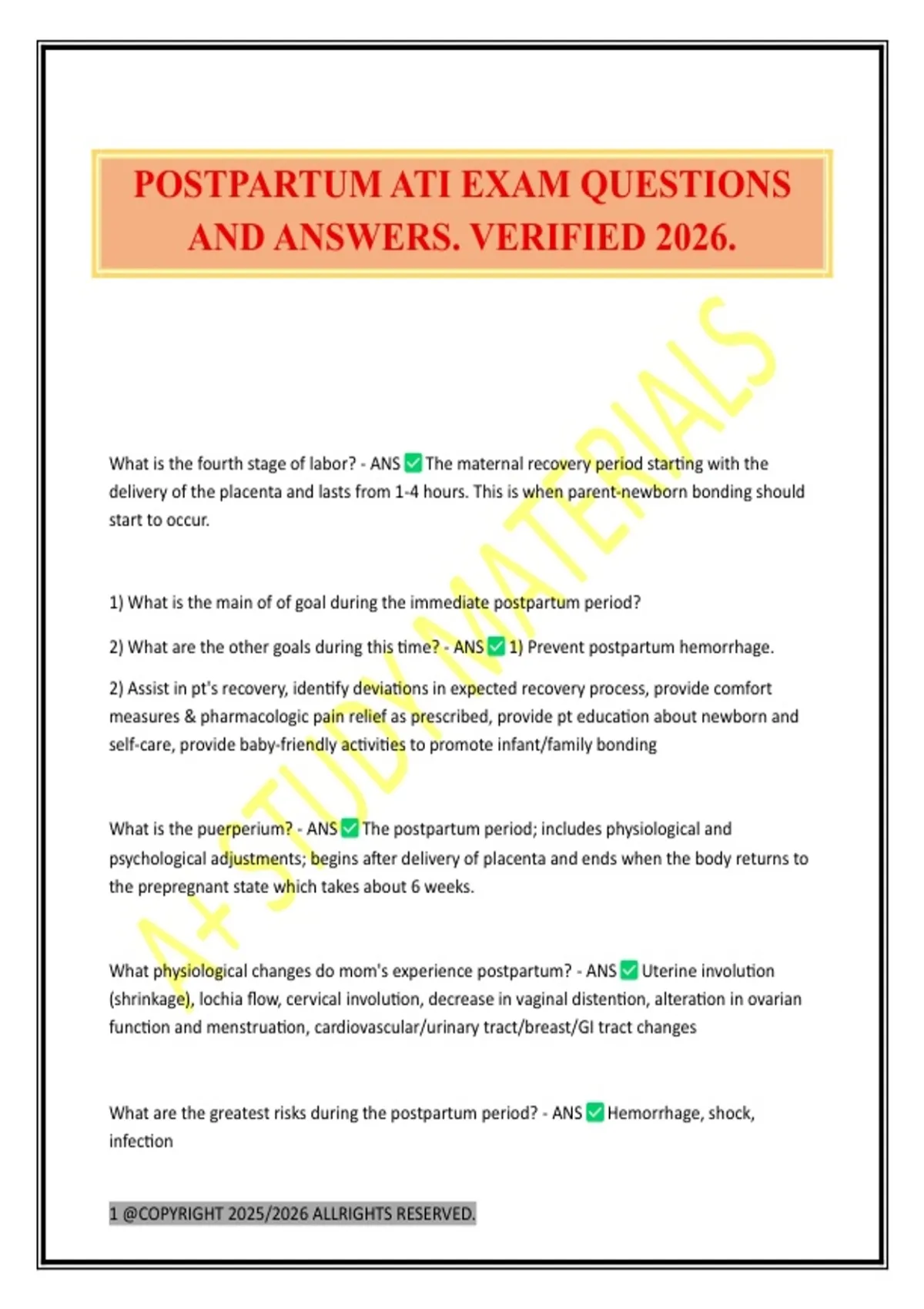 What is the puerperium? - ANS The postpartum period; includes physiological and