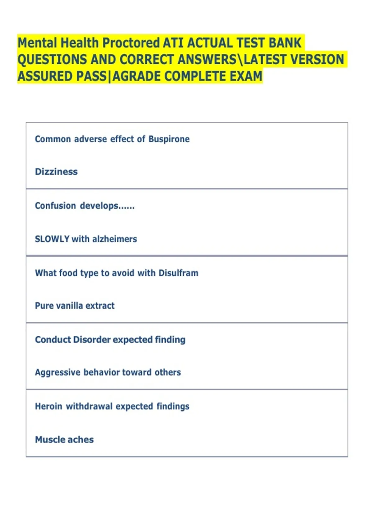 Mental Health Proctored ATI ACTUAL TEST BANK
