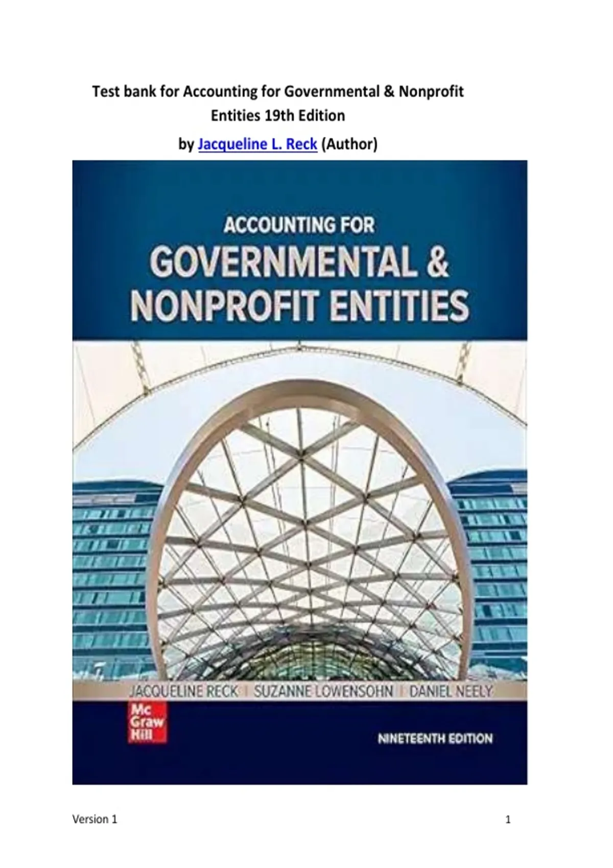 Test bank for Accounting for Governmental & Nonprofit Entities 19th Edition by Jacqueline L. Reck (Author)
