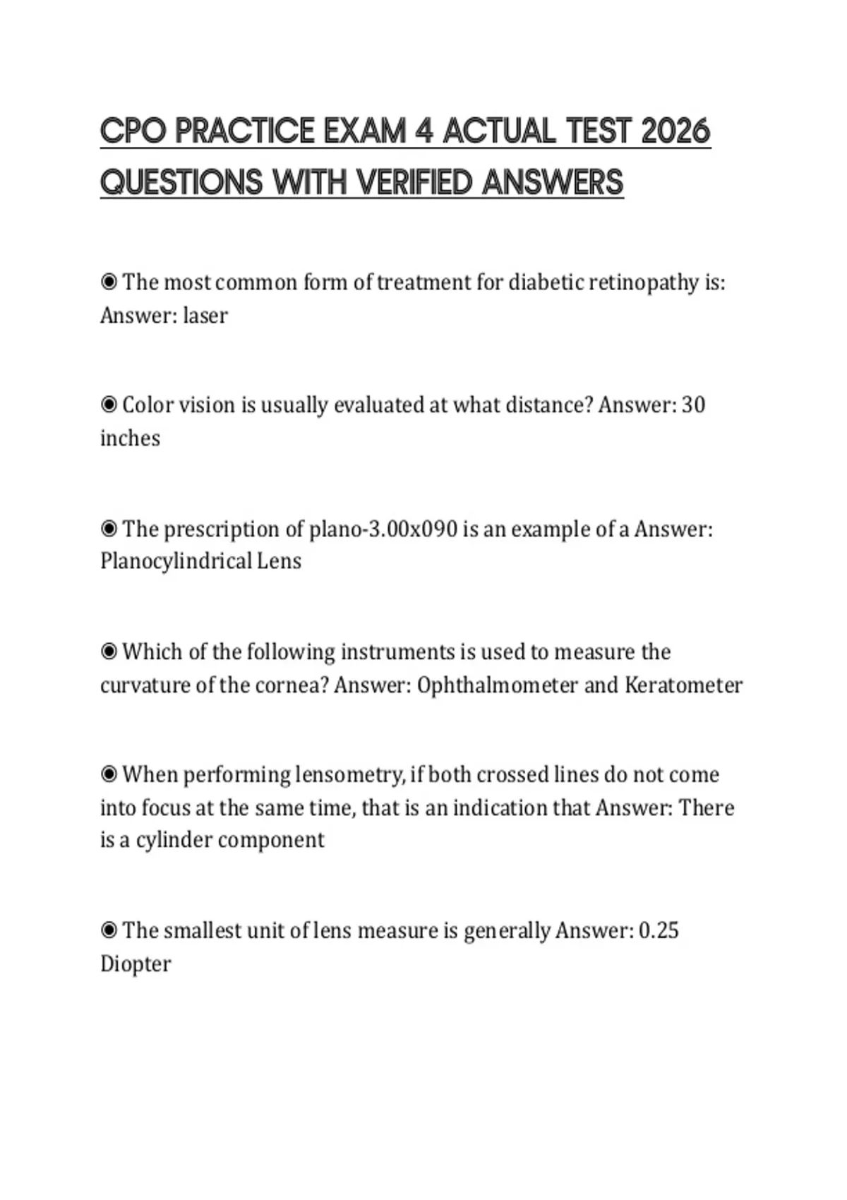 CPO PRACTICE EXAM 4 ACTUAL TEST 2026 QUESTIONS WITH VERIFIED ANSWERS