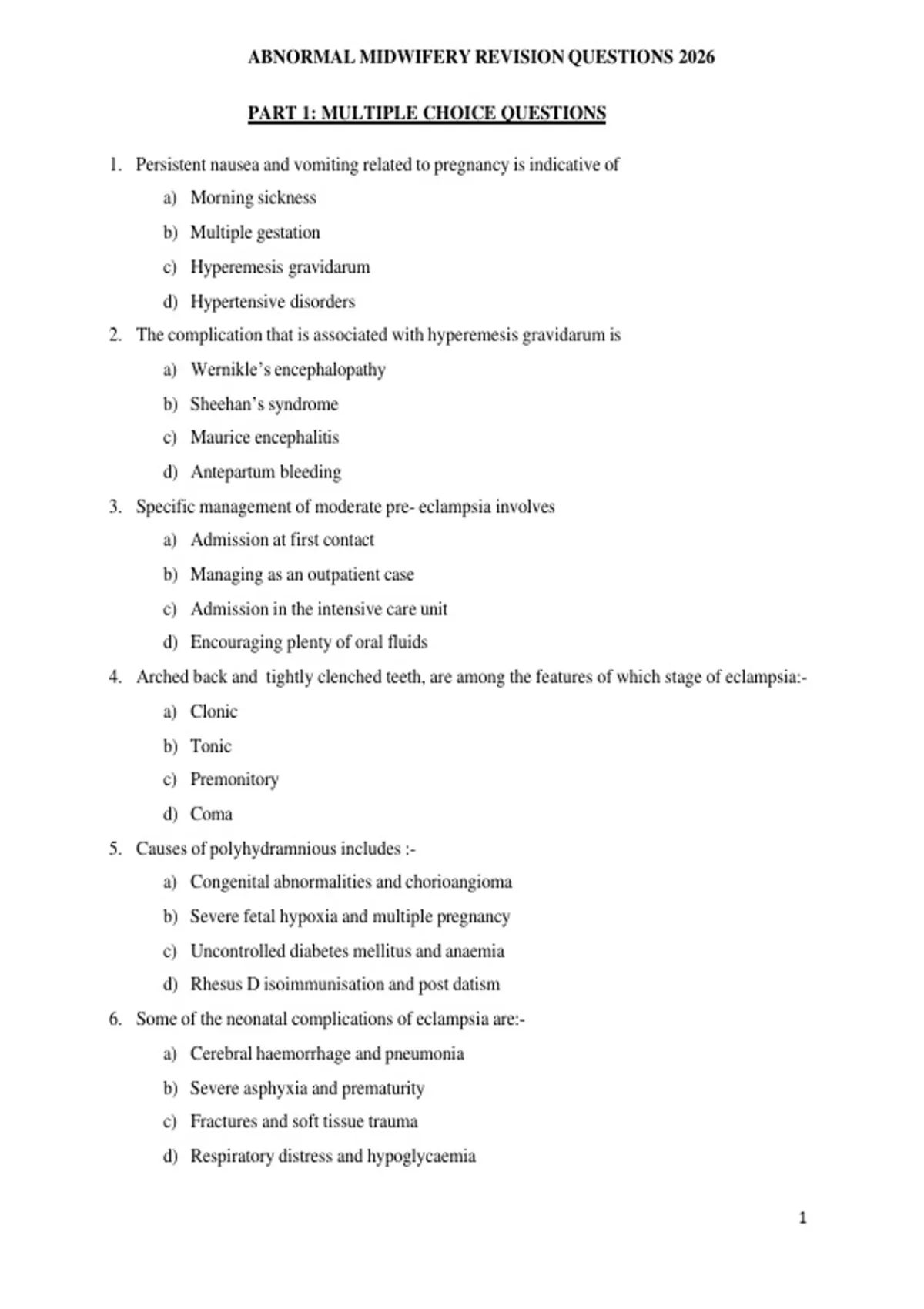 ABNORMAL MIDWIFERY REVISION QUESTIONS 2026