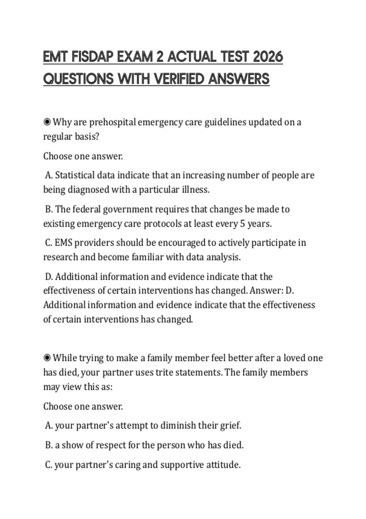 EMT FISDAP EXAM 2 ACTUAL TEST 2026