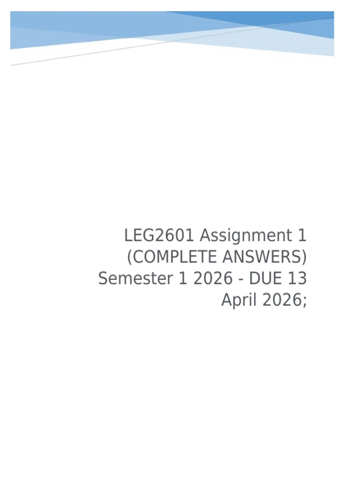 , LEG2601 Assignment 1 (COMPLETE ANSWERS) Semester 1 2026 - DUE 13 April 2026;