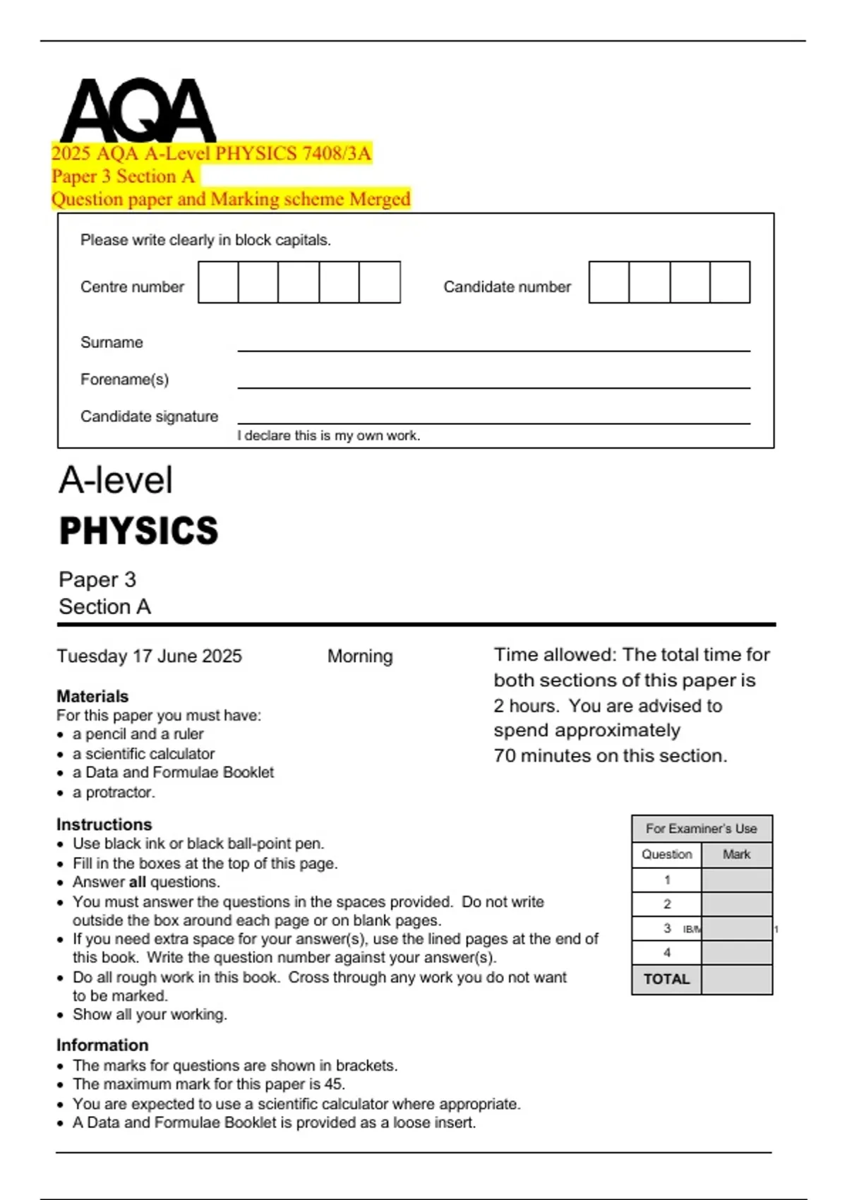 Tuesday 17 June 2025 Morning Time allowed: The total time for