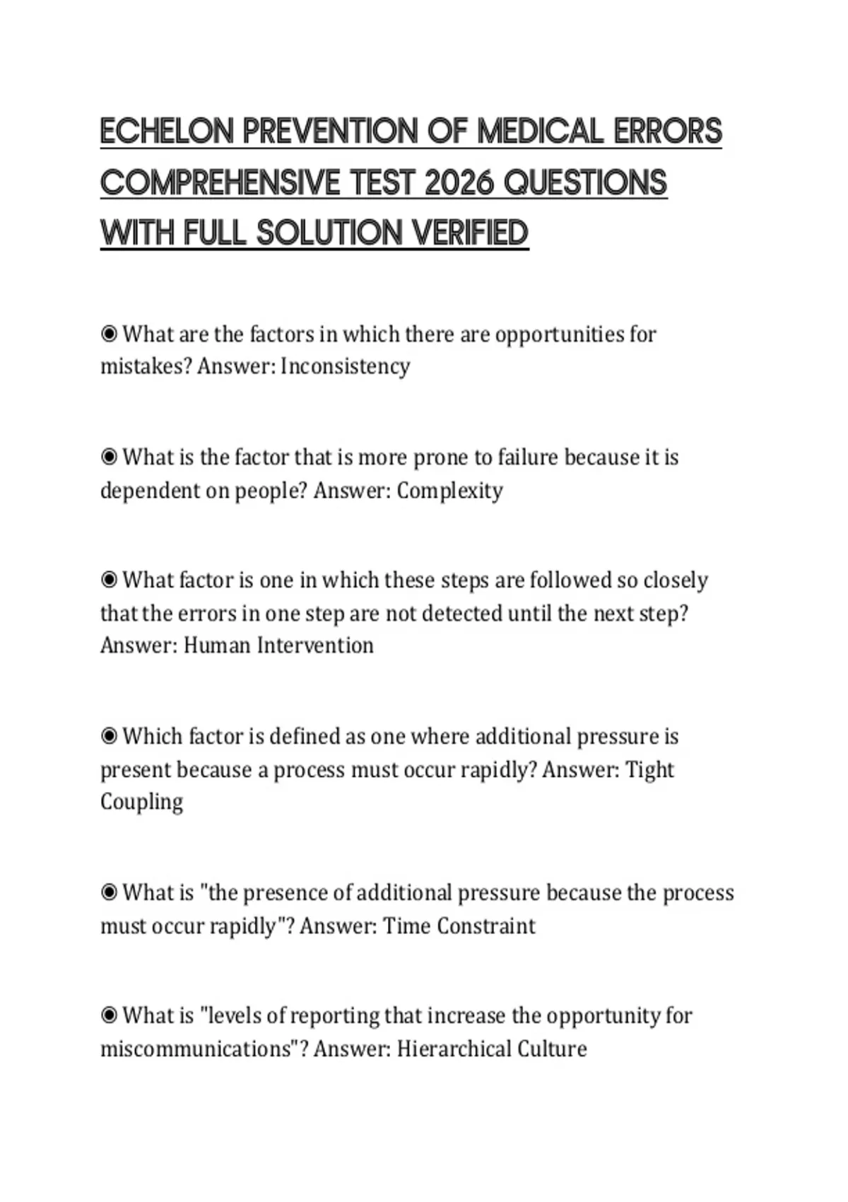 ECHELON PREVENTION OF MEDICAL ERRORS
