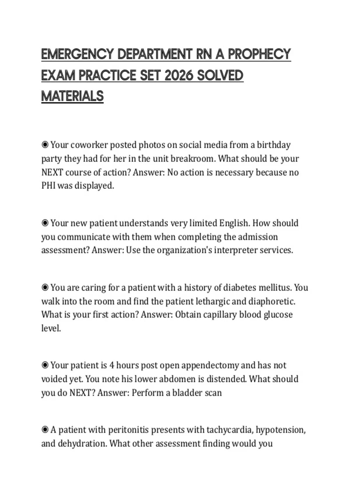 EMERGENCY DEPARTMENT RN A PROPHECY EXAM PRACTICE SET 2026 SOLVED MATERIALS