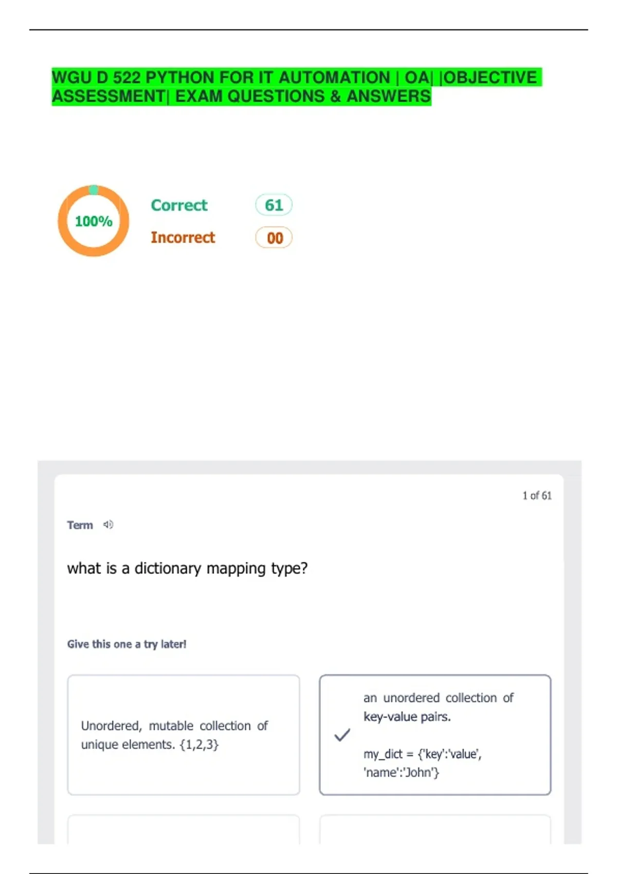 WGU D 522 PYTHON FOR IT AUTOMATION |OA| OBJECTIVE ASSESSMENT| EXAM QUESTIONS & ANSWERS| LATEST UPDATE | FULLY SOLVED
