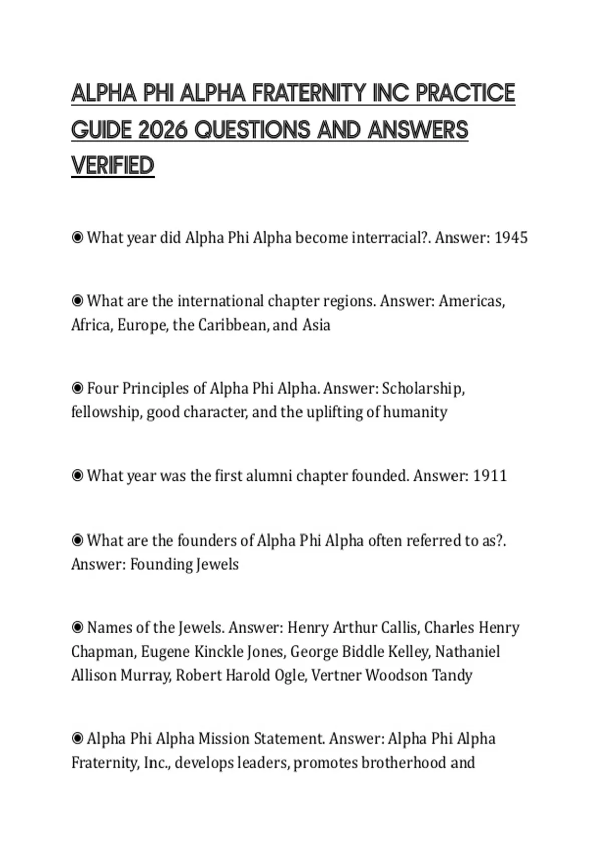 ◉ Alpha Phi Alpha Mission Statement. Answer: Alpha Phi Alpha