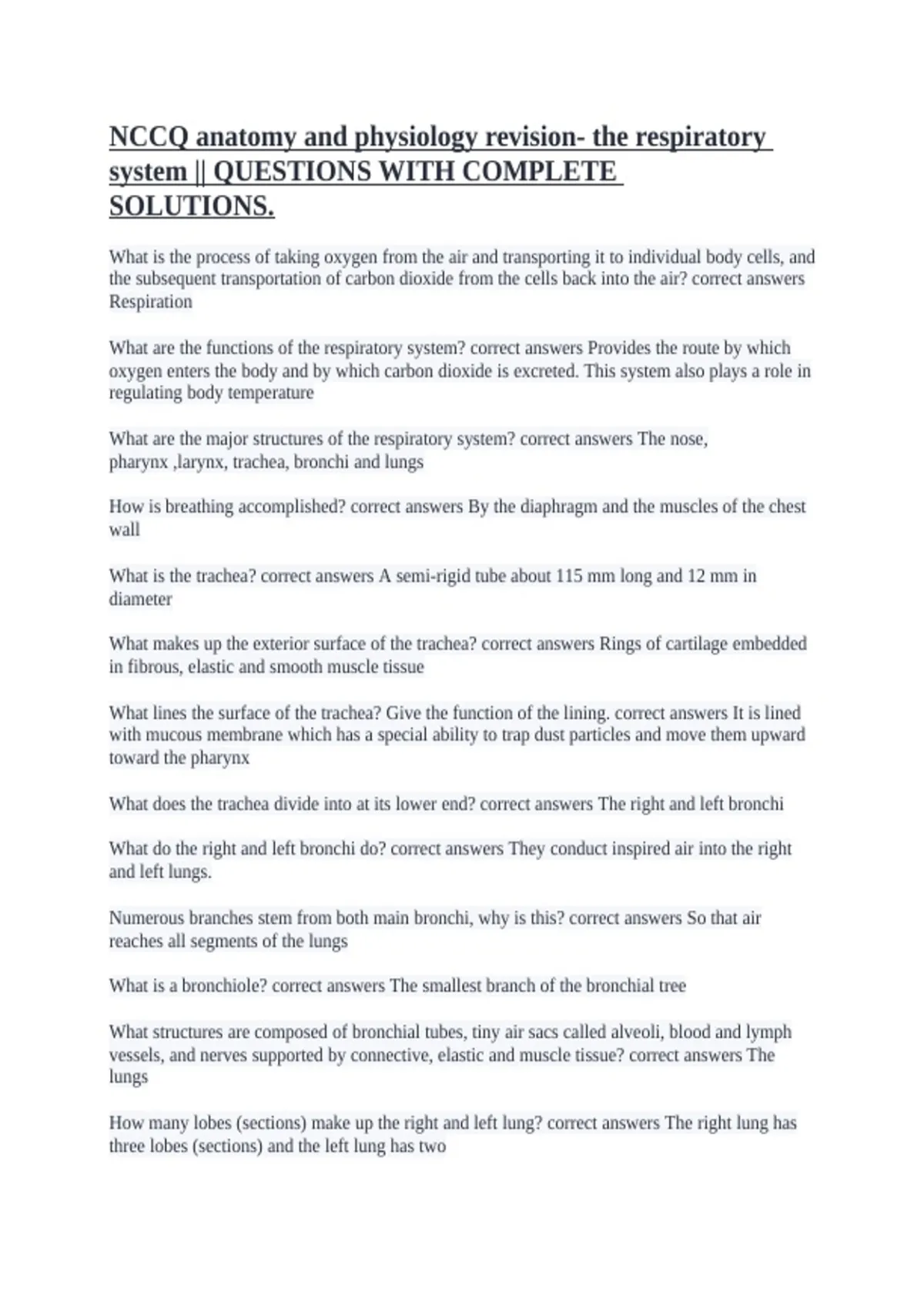 NCCQ anatomy and physiology revision- the respiratory system || QUESTIONS WITH COMPLETE SOLUTIONS.