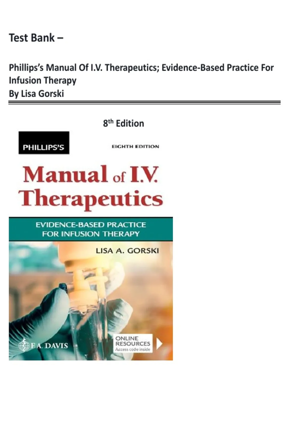 ,Test Bank For Phillips’s Manual Of I.V. Therapeutics: Evidence-Based Practice For Infusion Therapy, 8th