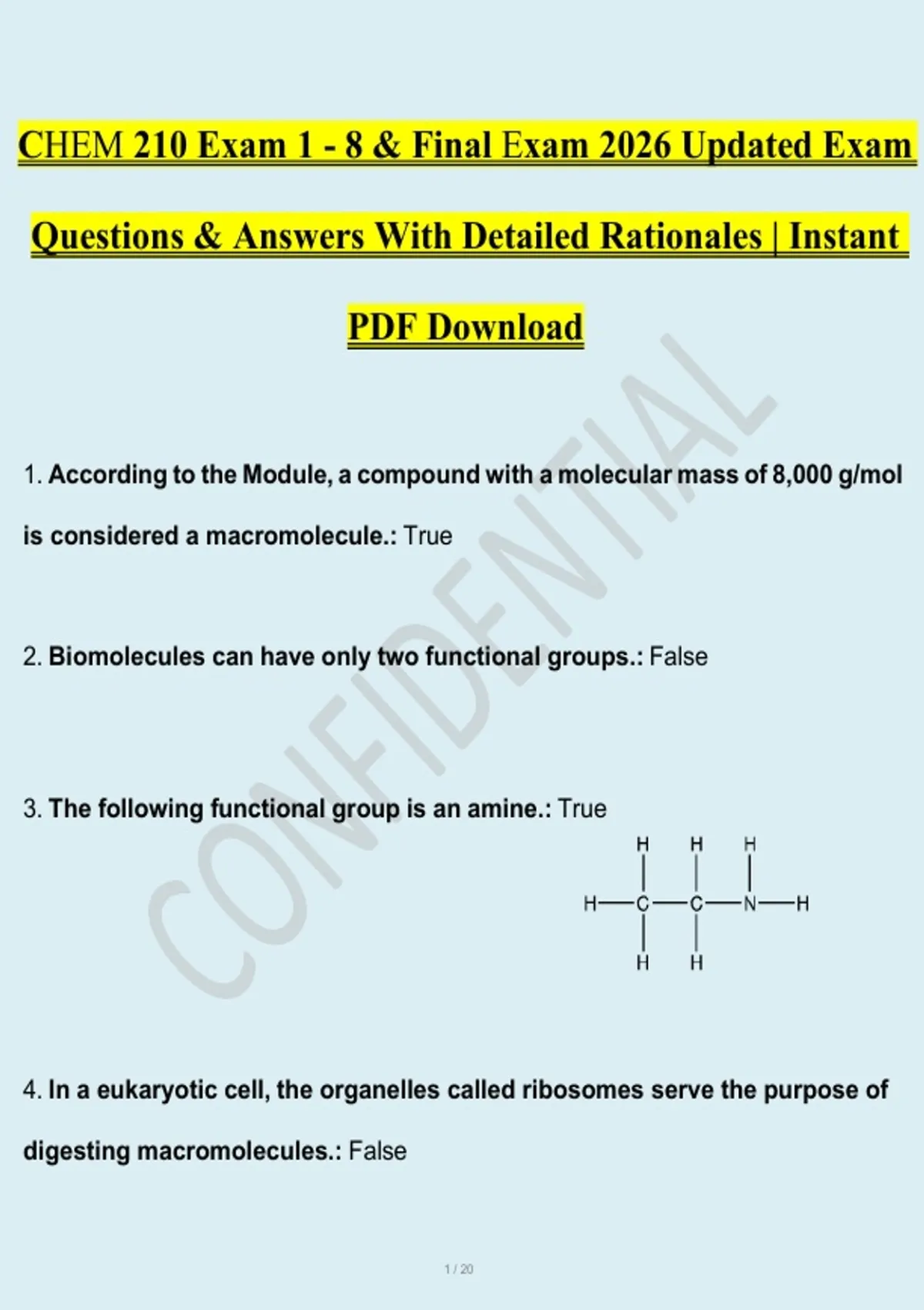 CHEM 210 Exam 1 - 8 & Final Exam 2026 Updated Exam
