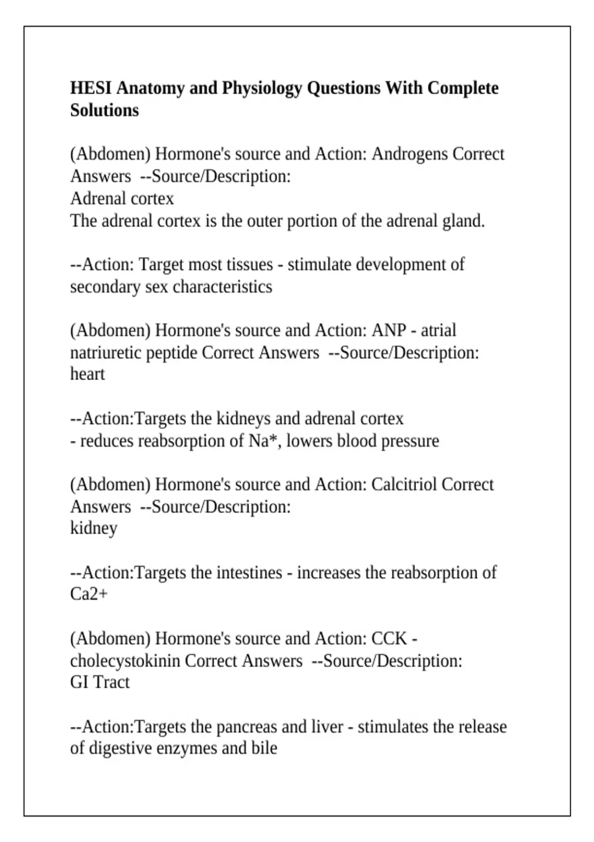 HESI Anatomy and Physiology Questions With Complete Solutions