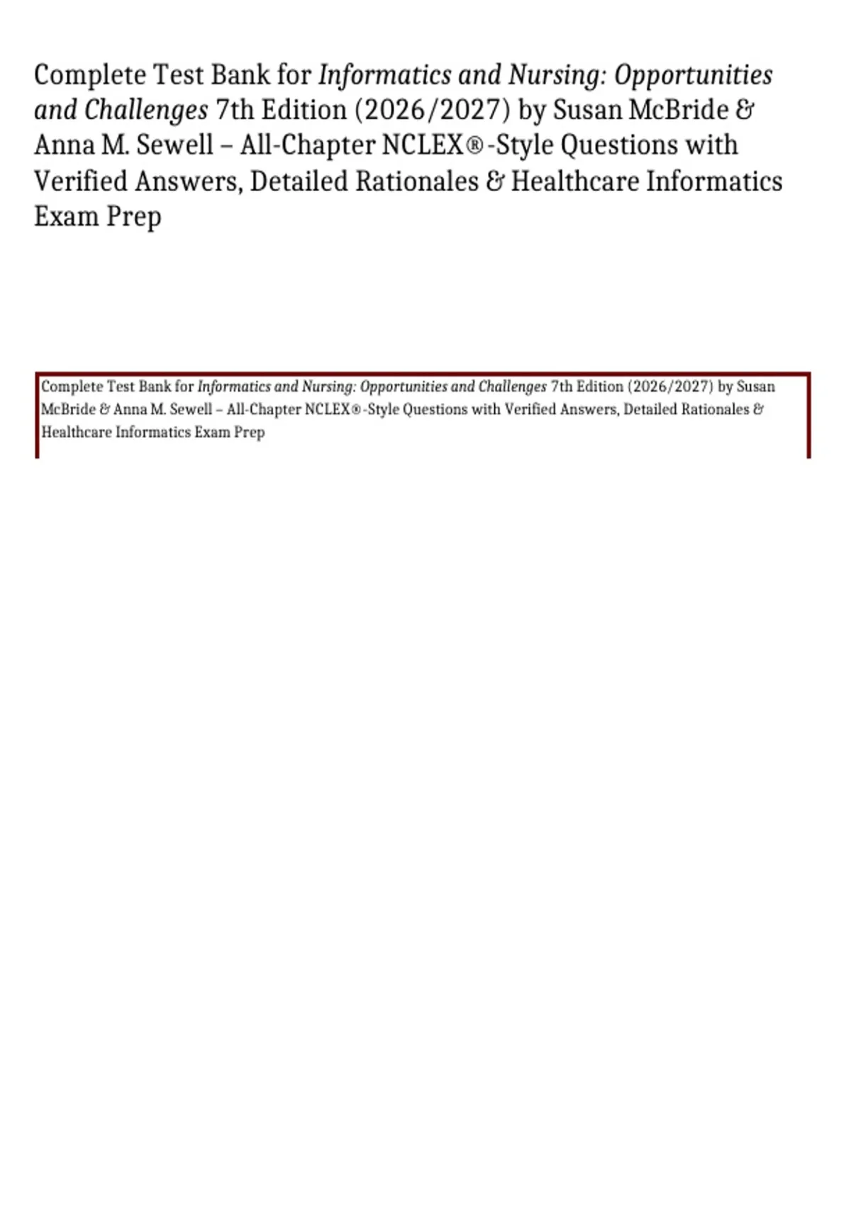 Complete Test Bank for Informatics and Nursing: Opportunities and Challenges 7th Edition (2026/2027) by Susan