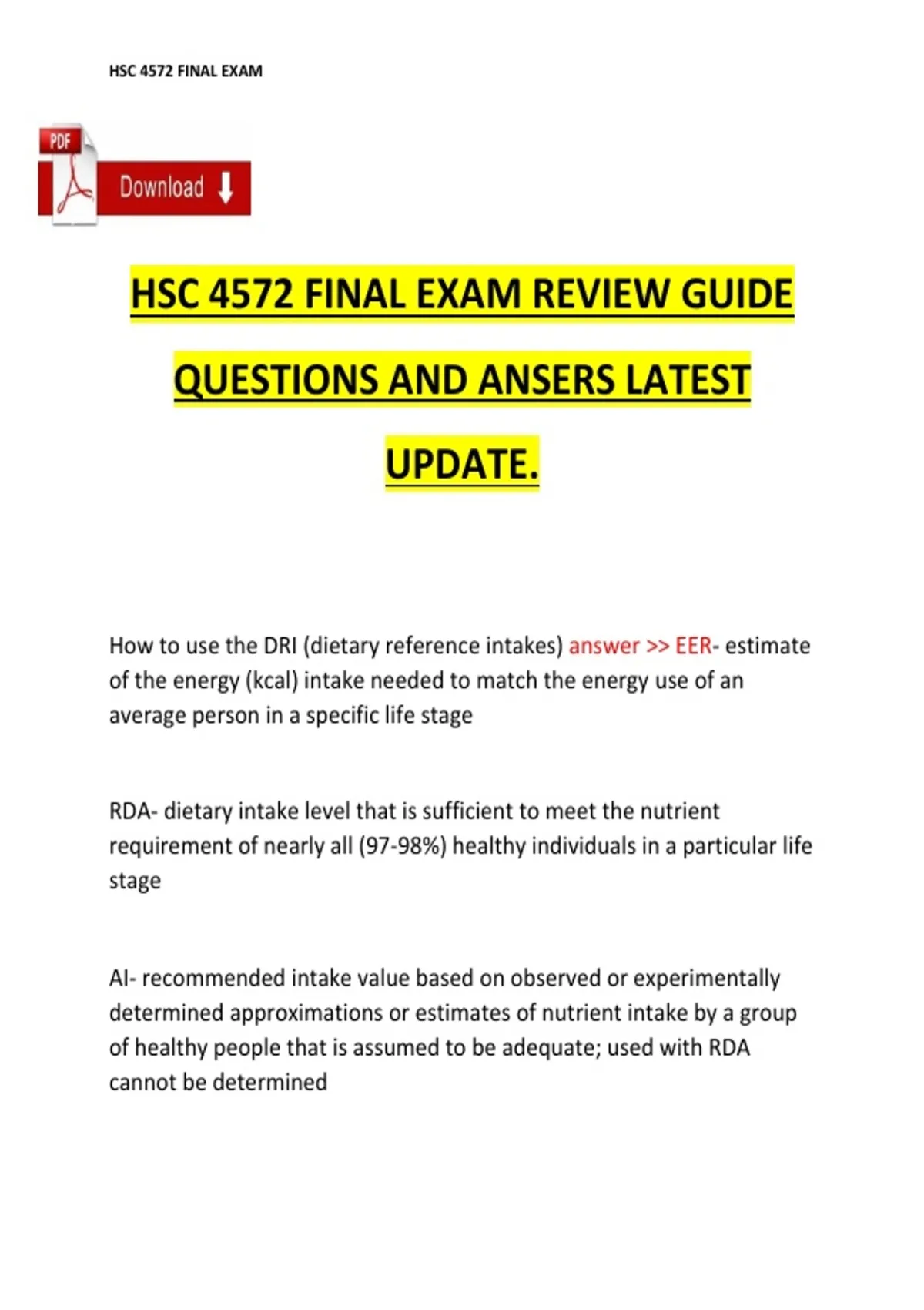 HSC 4572 FINAL EXAM REVIEW GUIDE